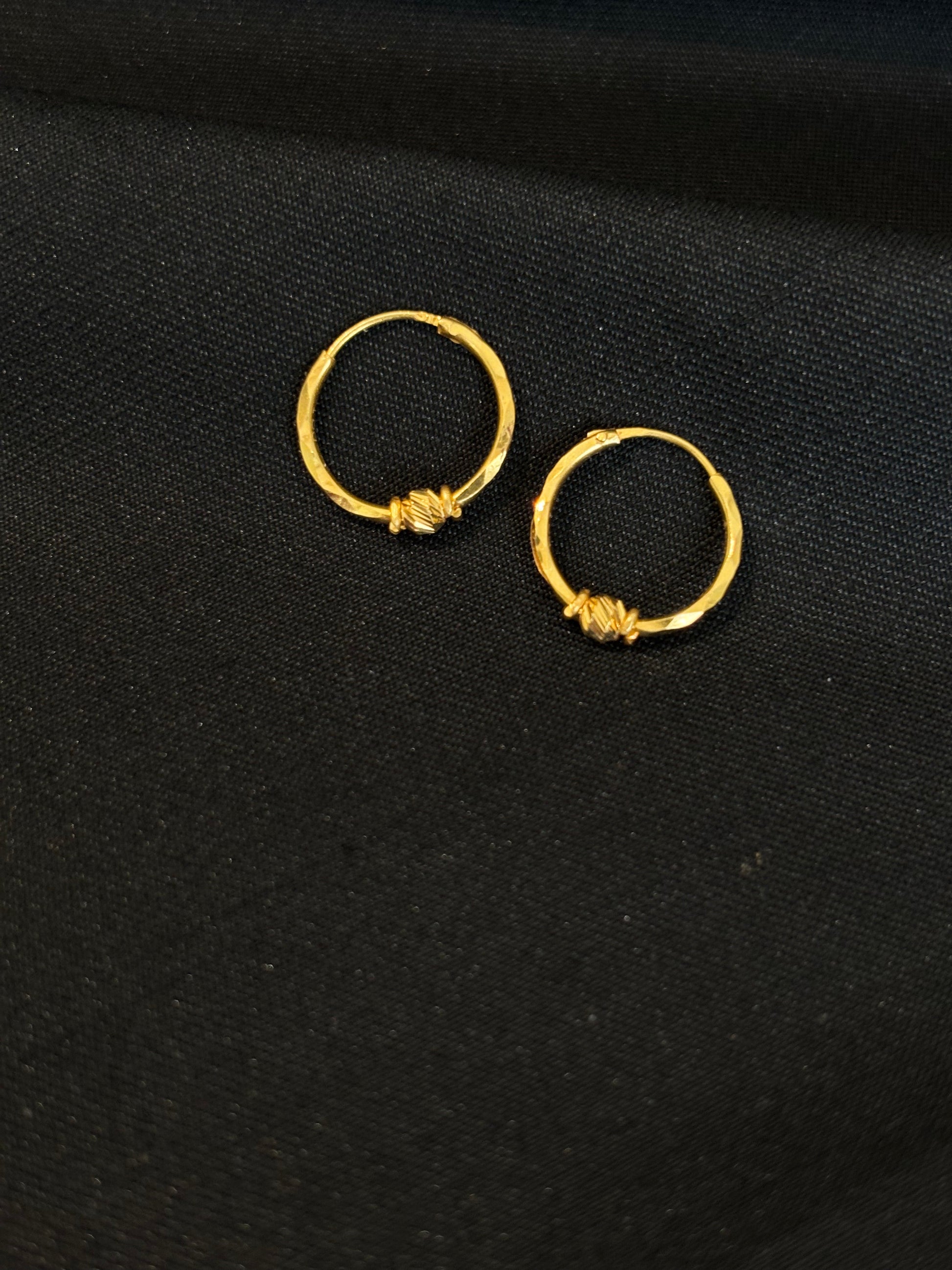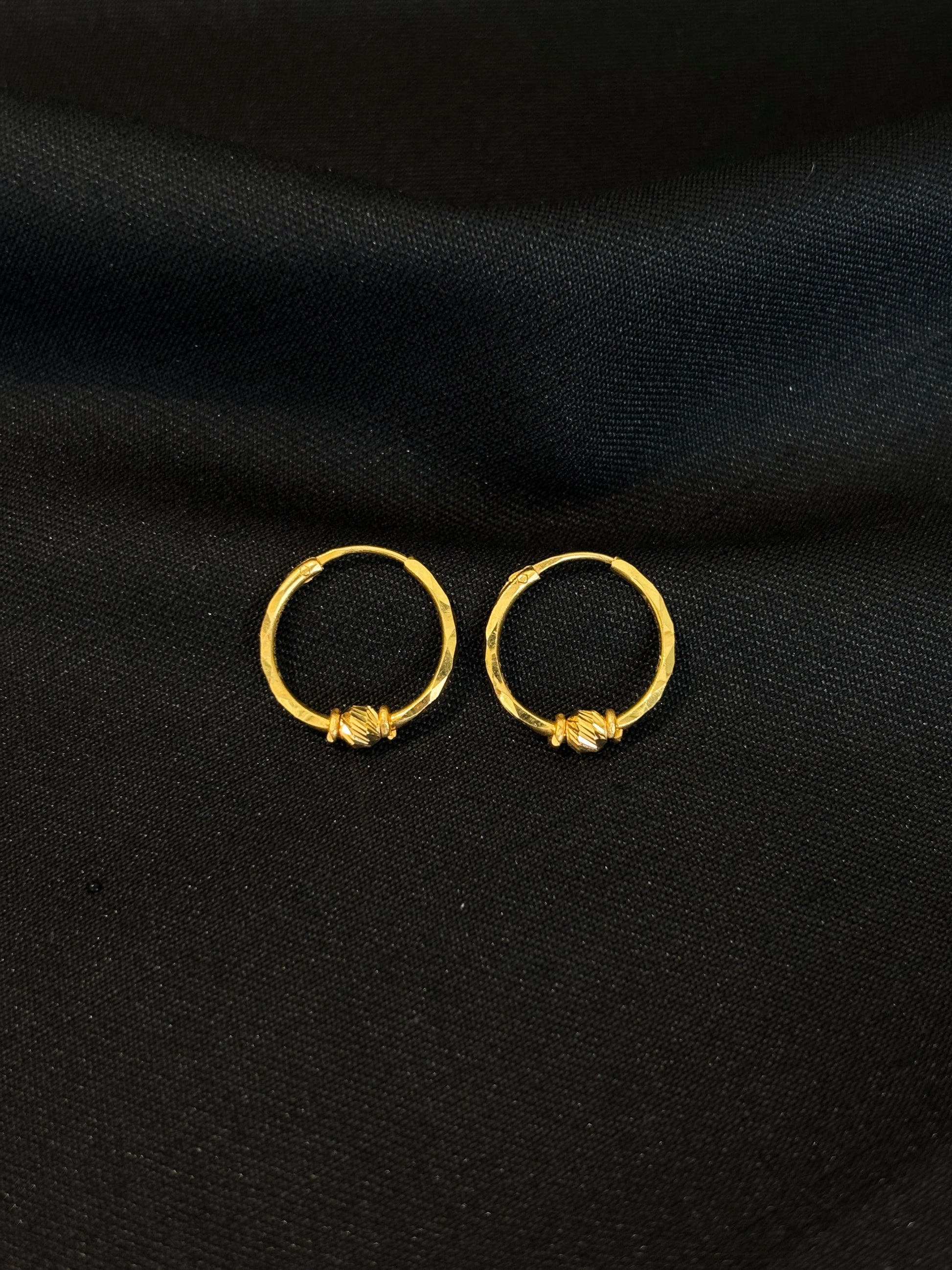 22K Gold Classic Bali Earrings with Textured Accent
