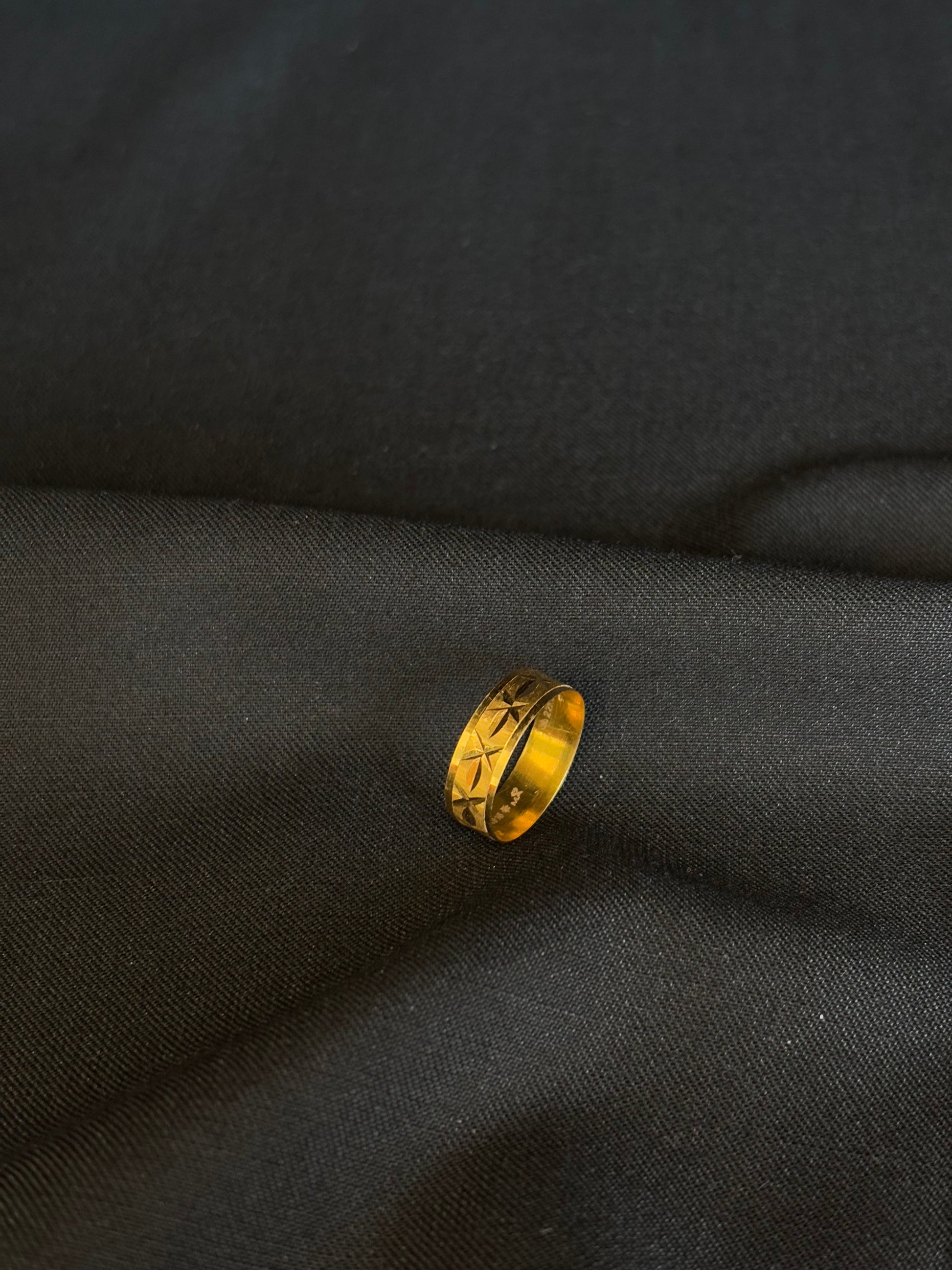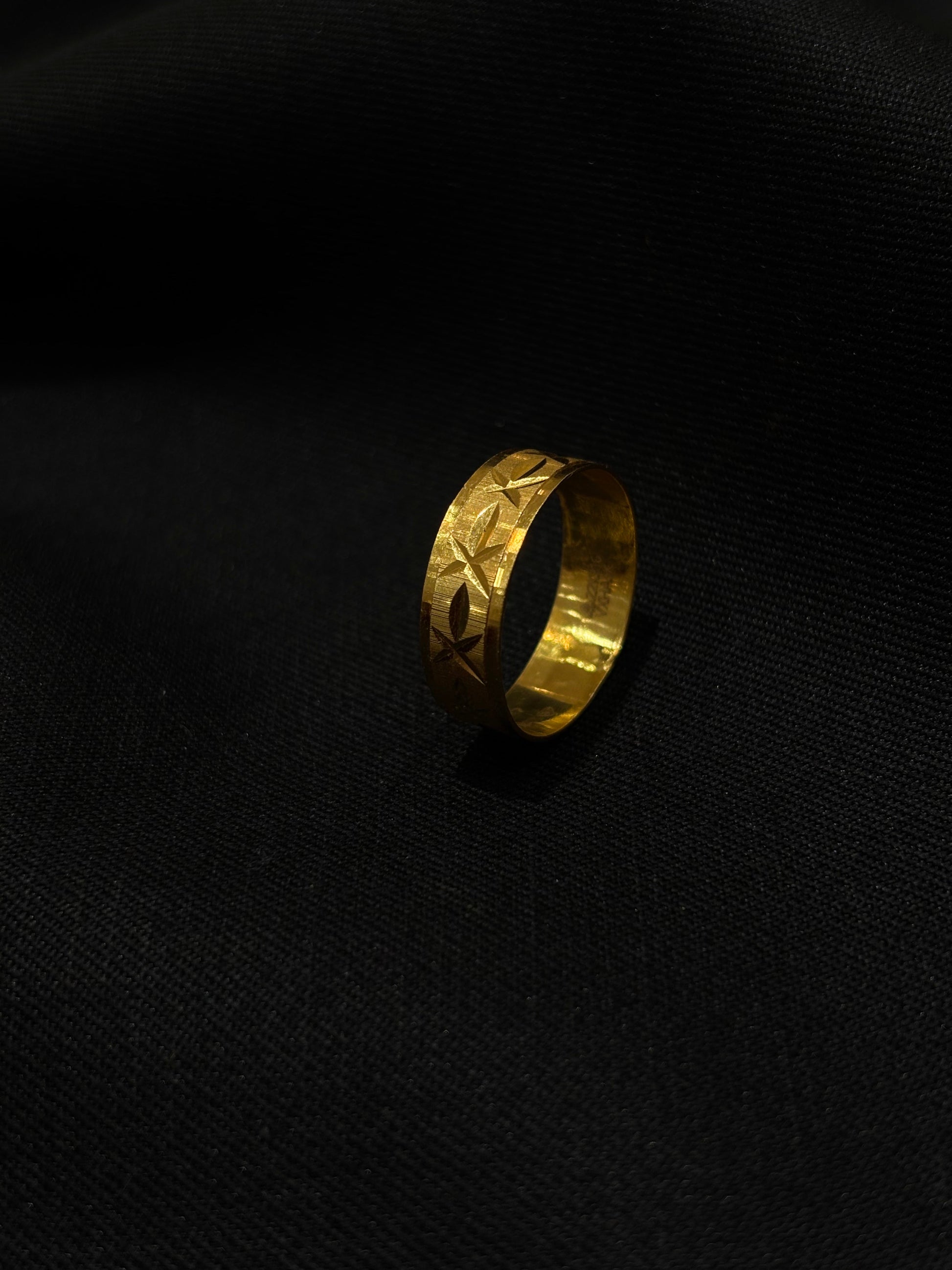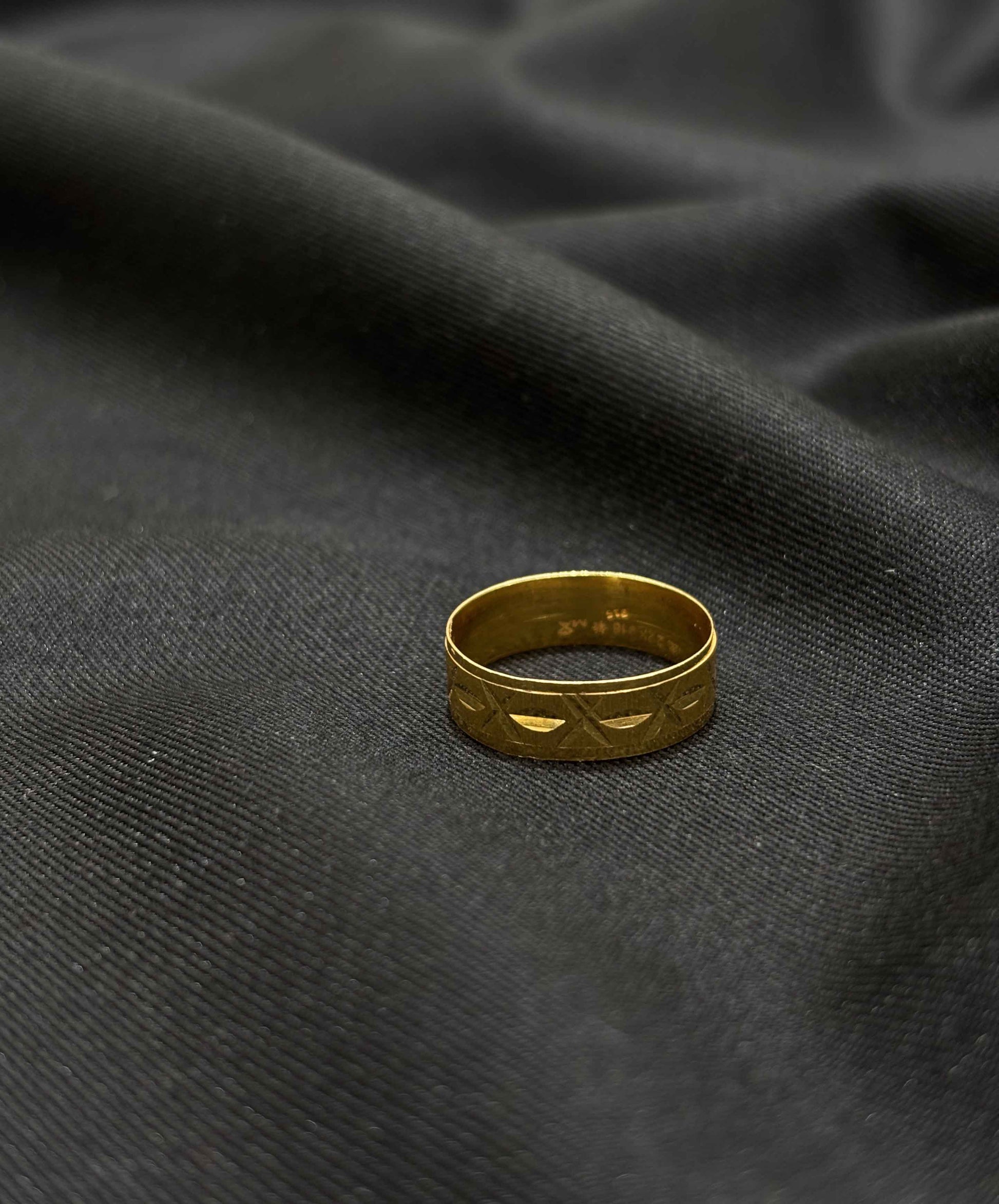 22K Gold Engraved Band Ring - Elegant & Minimalist Design