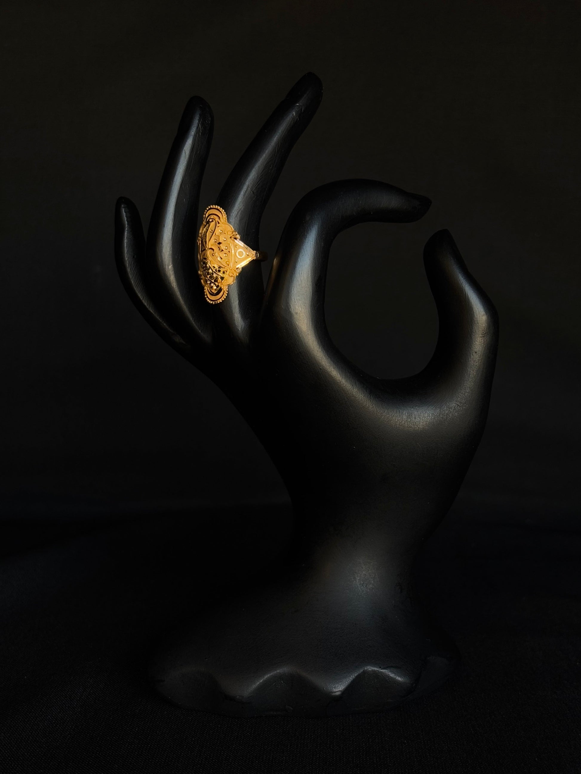 22K Gold Filigree Statement Ring - Elegant & Intricate Design