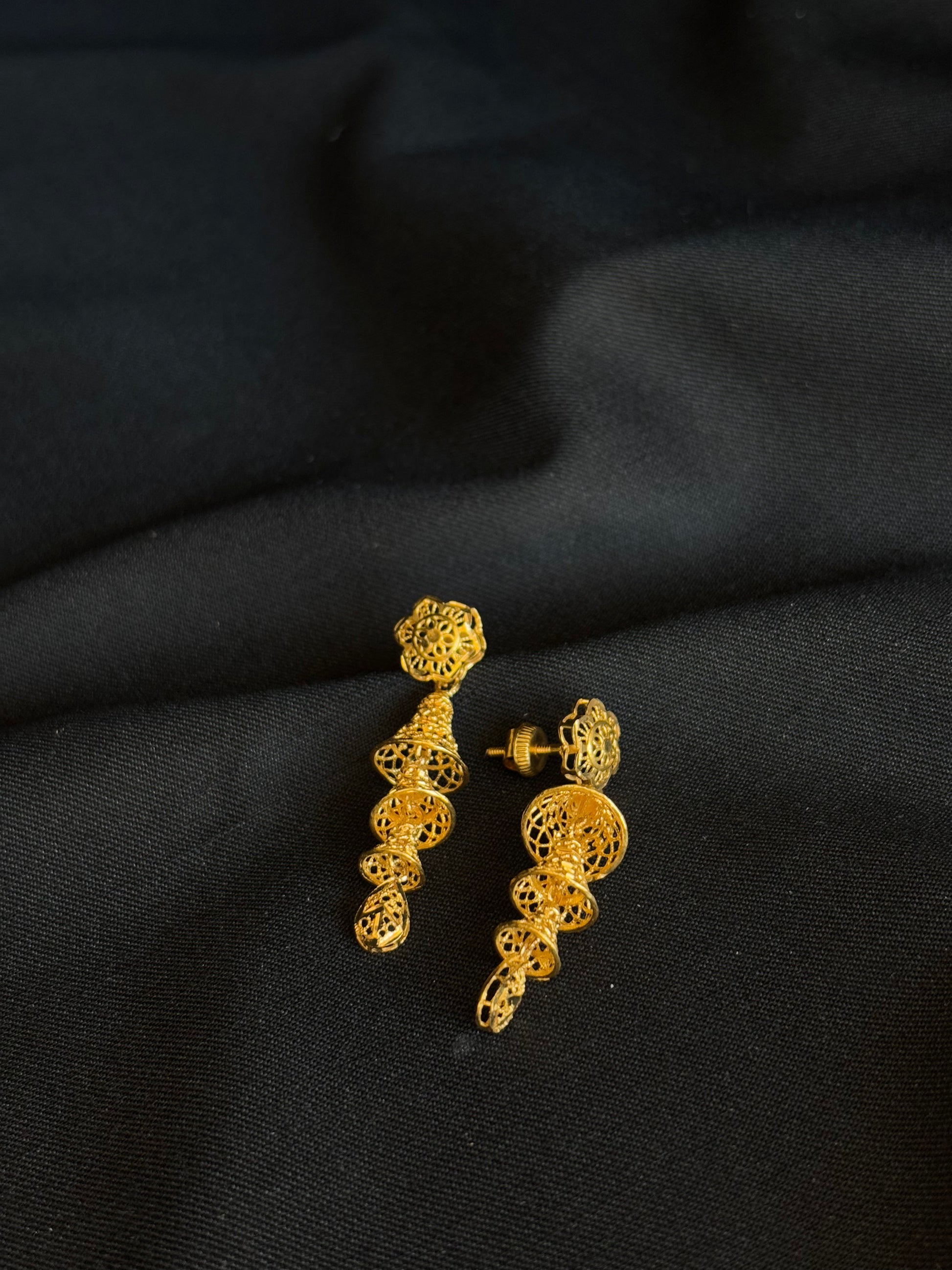 22K Gold Floral Jhumka Earrings with Intricate Filigree - Traditional Indian Design