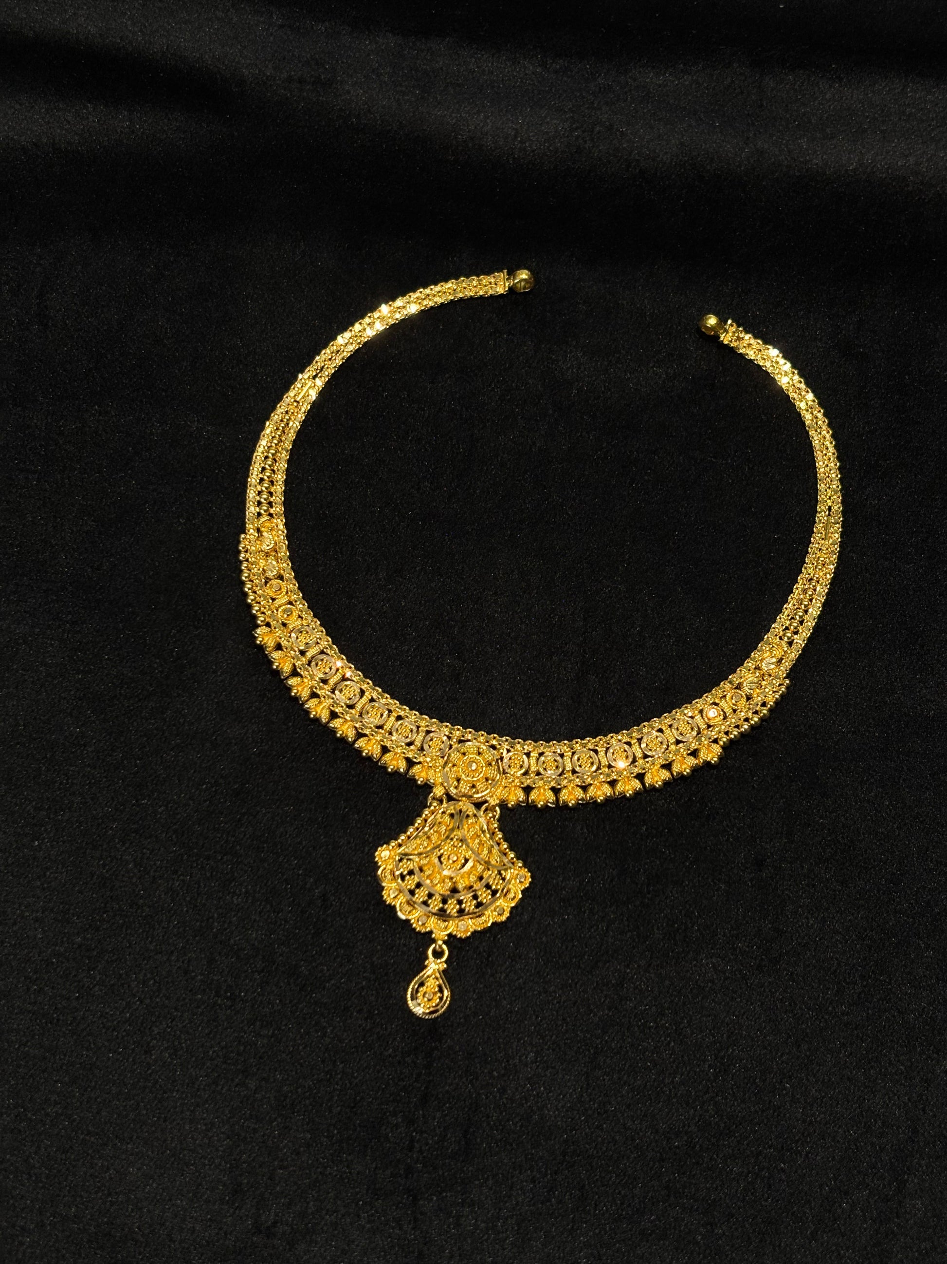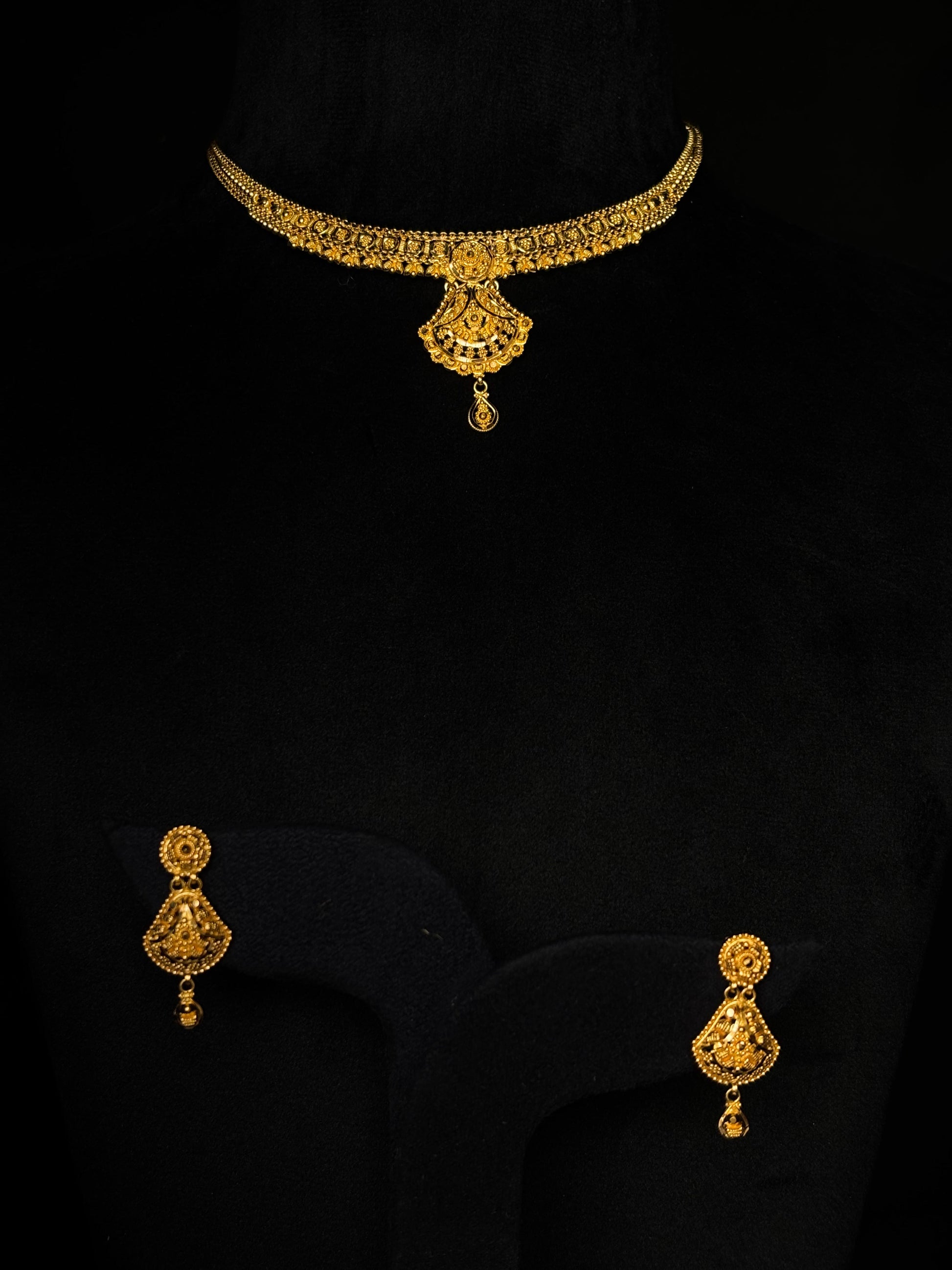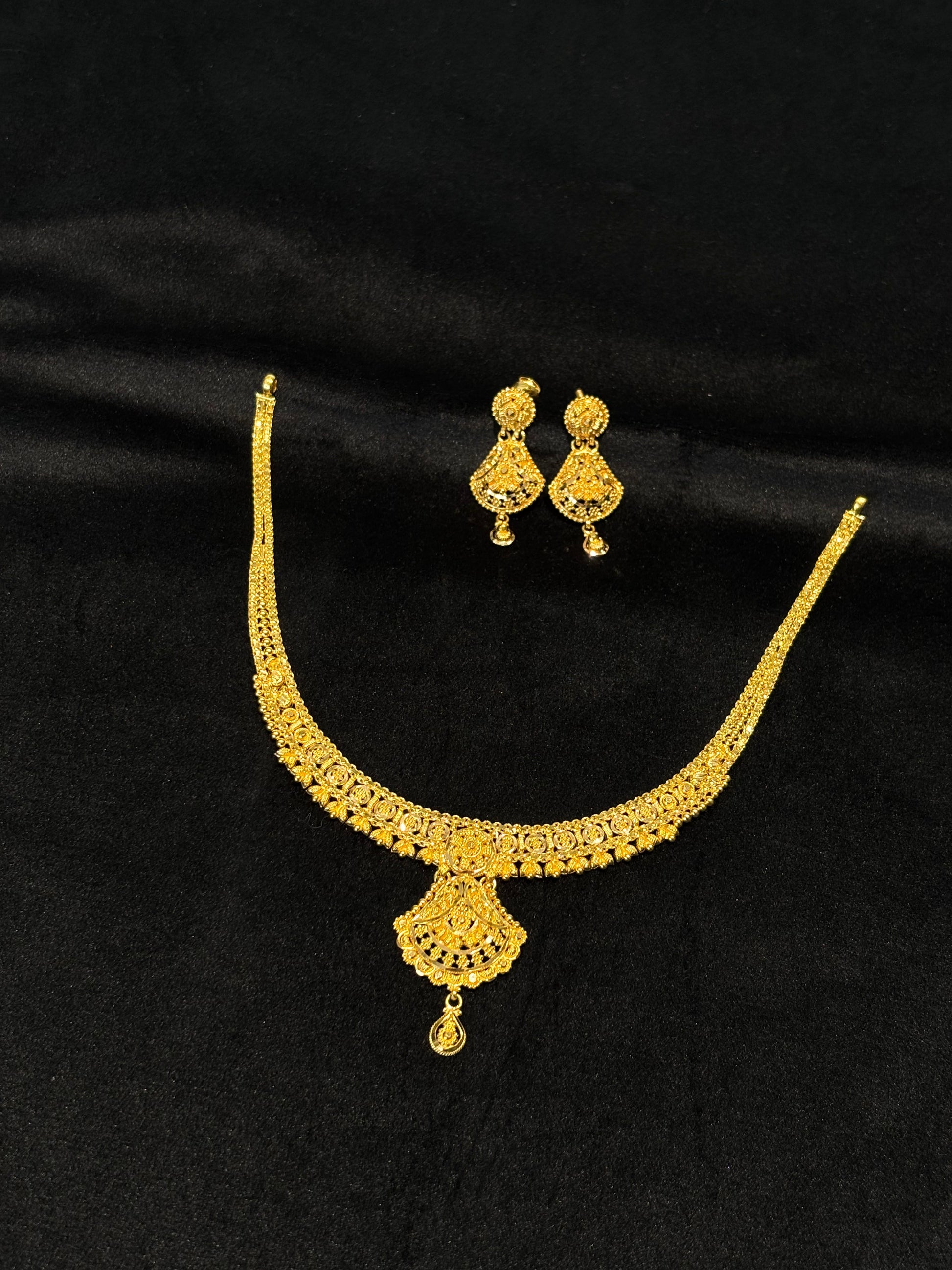 22K Gold Floral Necklace and Earrings Set