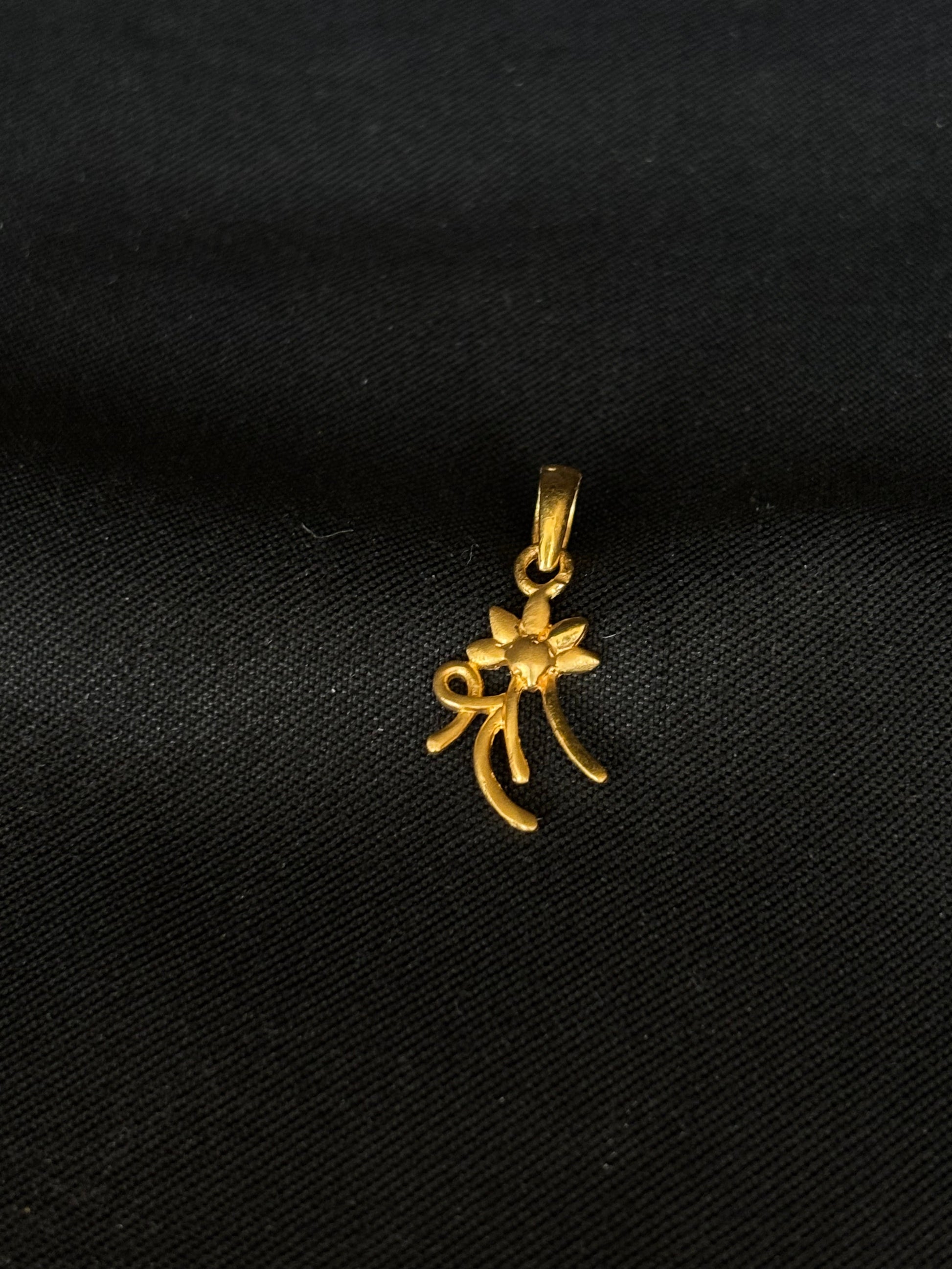 22K gold floral pendant. Crafted in a delicate flower design with flowing petal-like accents, this pendant is perfect for daily wear or special occasions. Lightweight yet striking, it pairs effortlessly with any gold chain to create a graceful and timeless look. BIS hallmarked for guaranteed purity and quality.