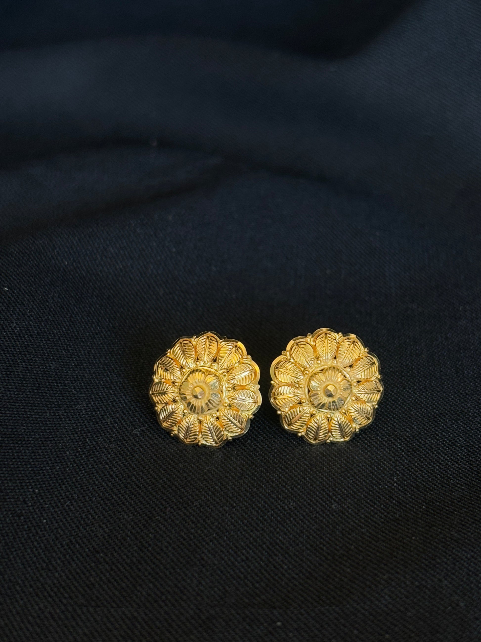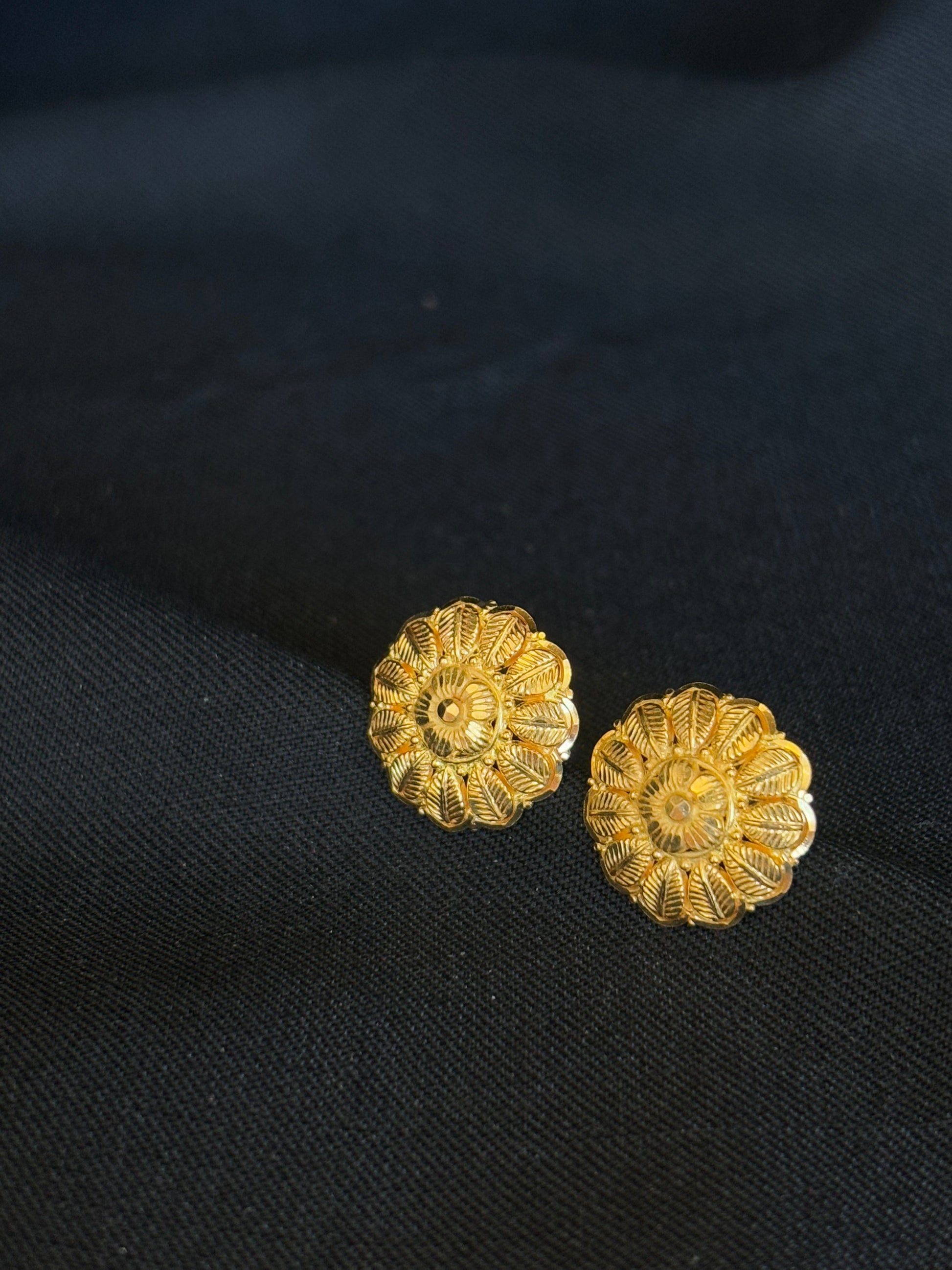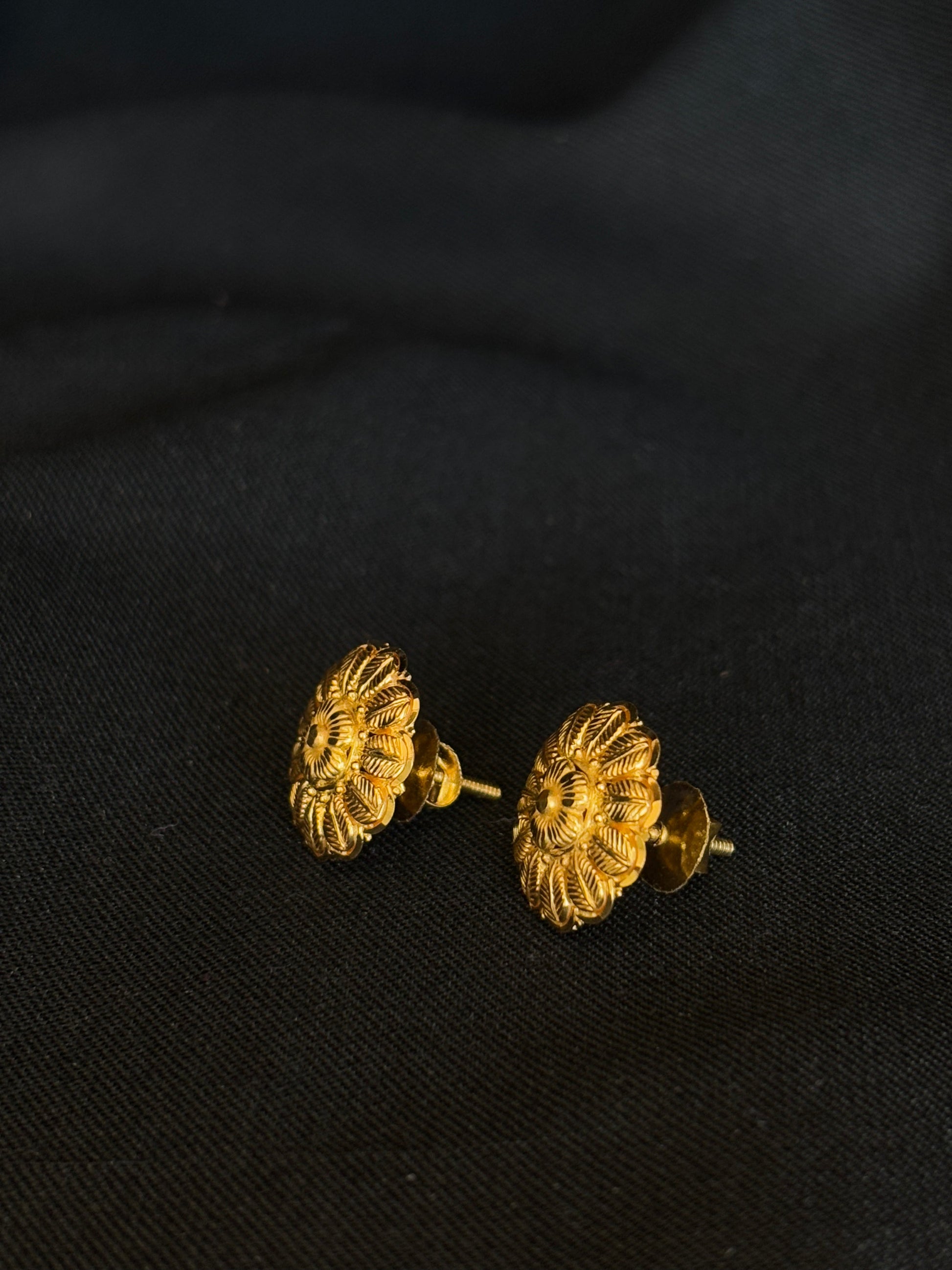 22K Gold Floral Stud Earrings with Textured Petals - Elegant & Traditional