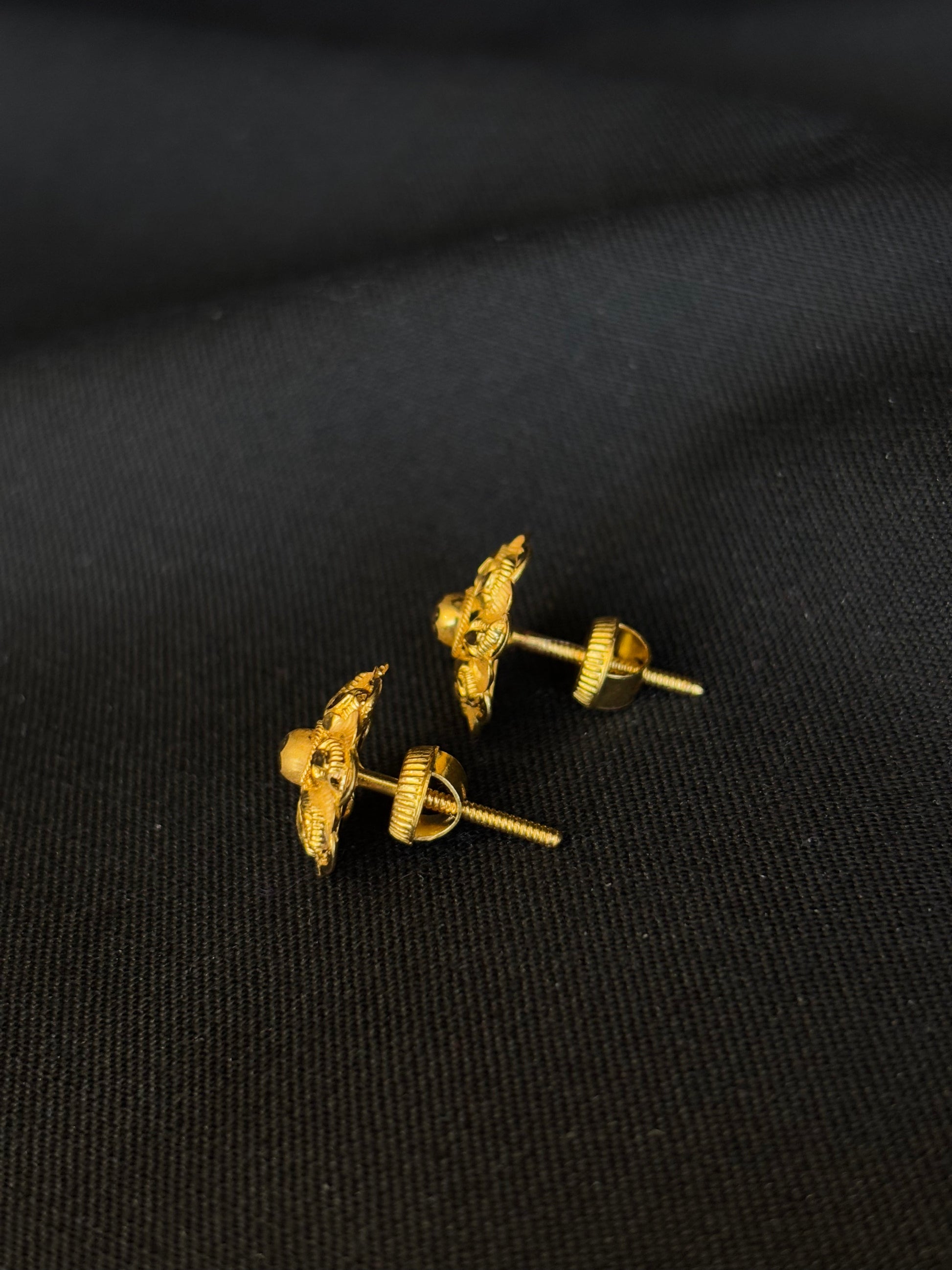 22K Gold Flower Stud Earrings - Elegant and Traditional