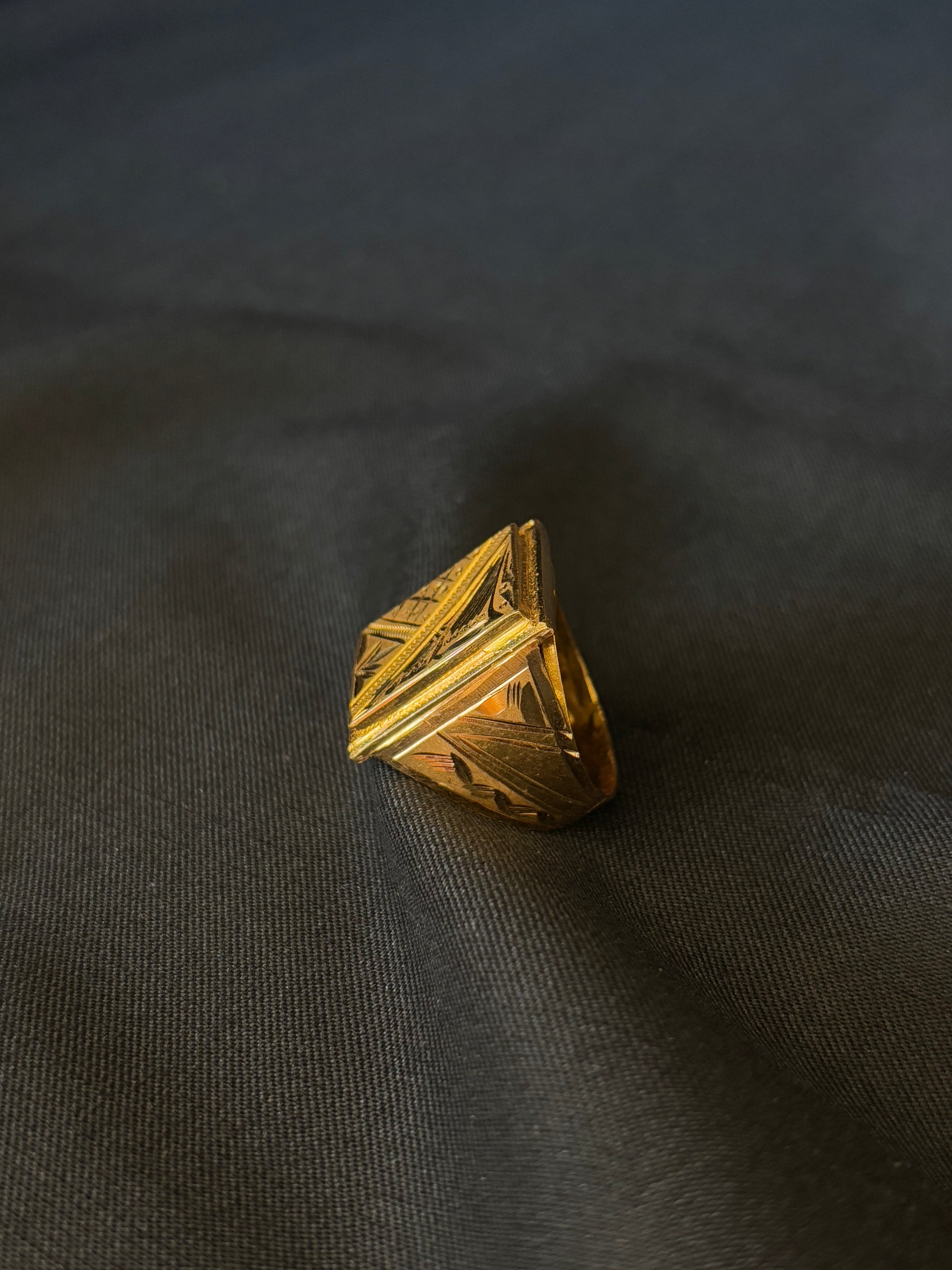 22K gold ring for men features a striking rectangular setting with detailed geometric patterns, adding a bold and modern touch to any look.