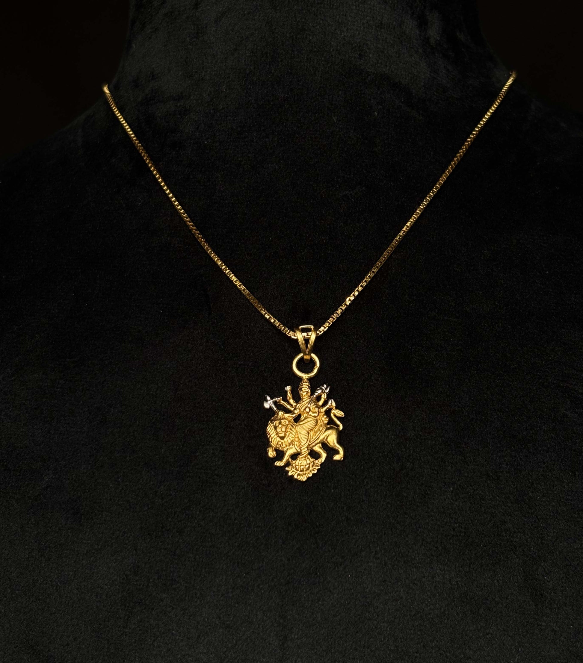 22K Gold Goddess Durga Pendant – Intricately Designed Spiritual Charm for Daily and Festive Wear
