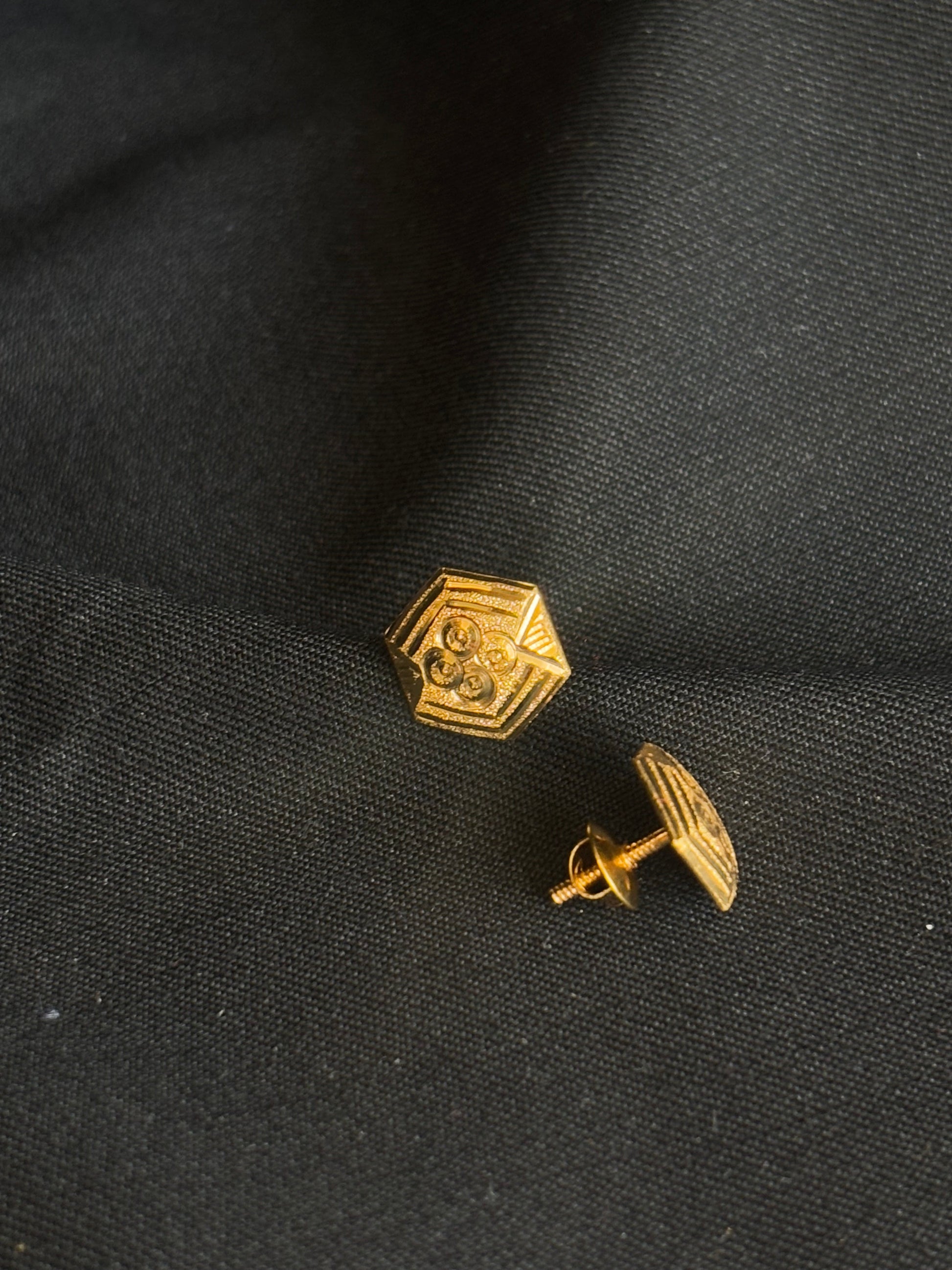 Add a touch of contemporary flair with these unique 22K gold hexagonal stud earrings. The clean geometric design and high-purity gold make them a stylish addition to any jewelry collection.