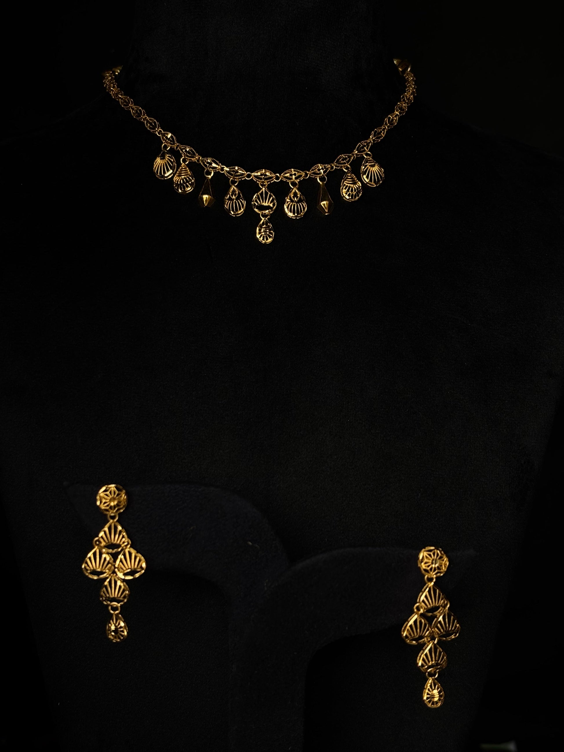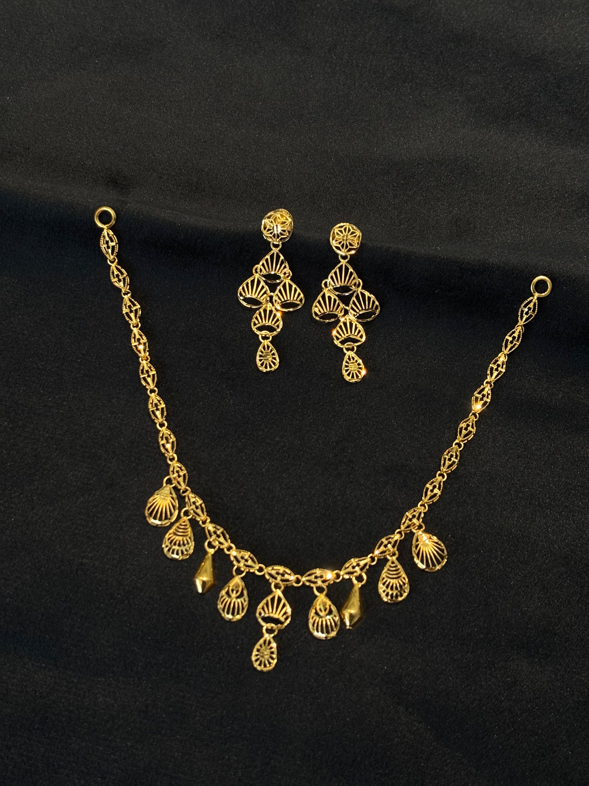 22K Gold Necklace and Earrings Set with Delicate Dangling Charms