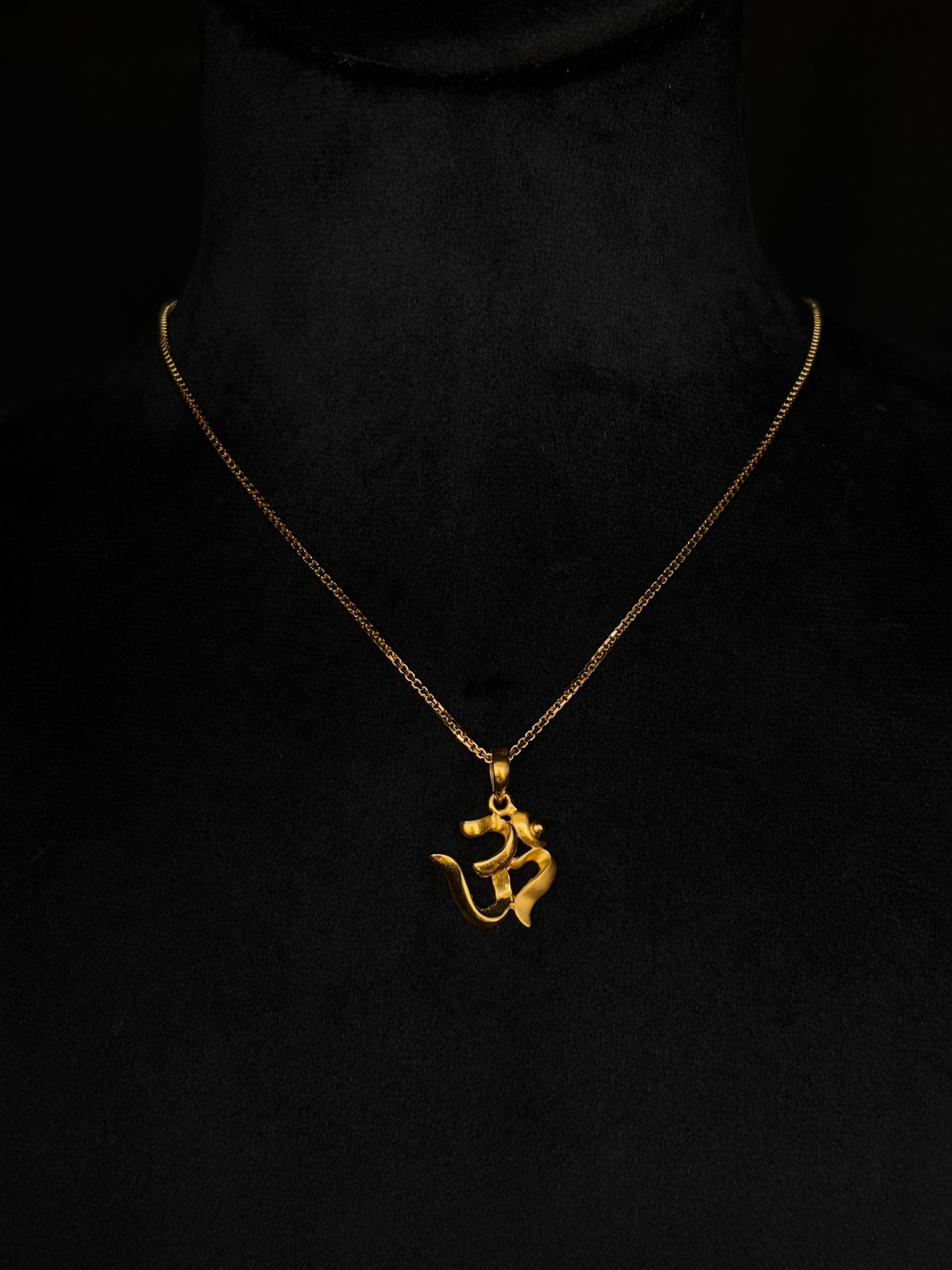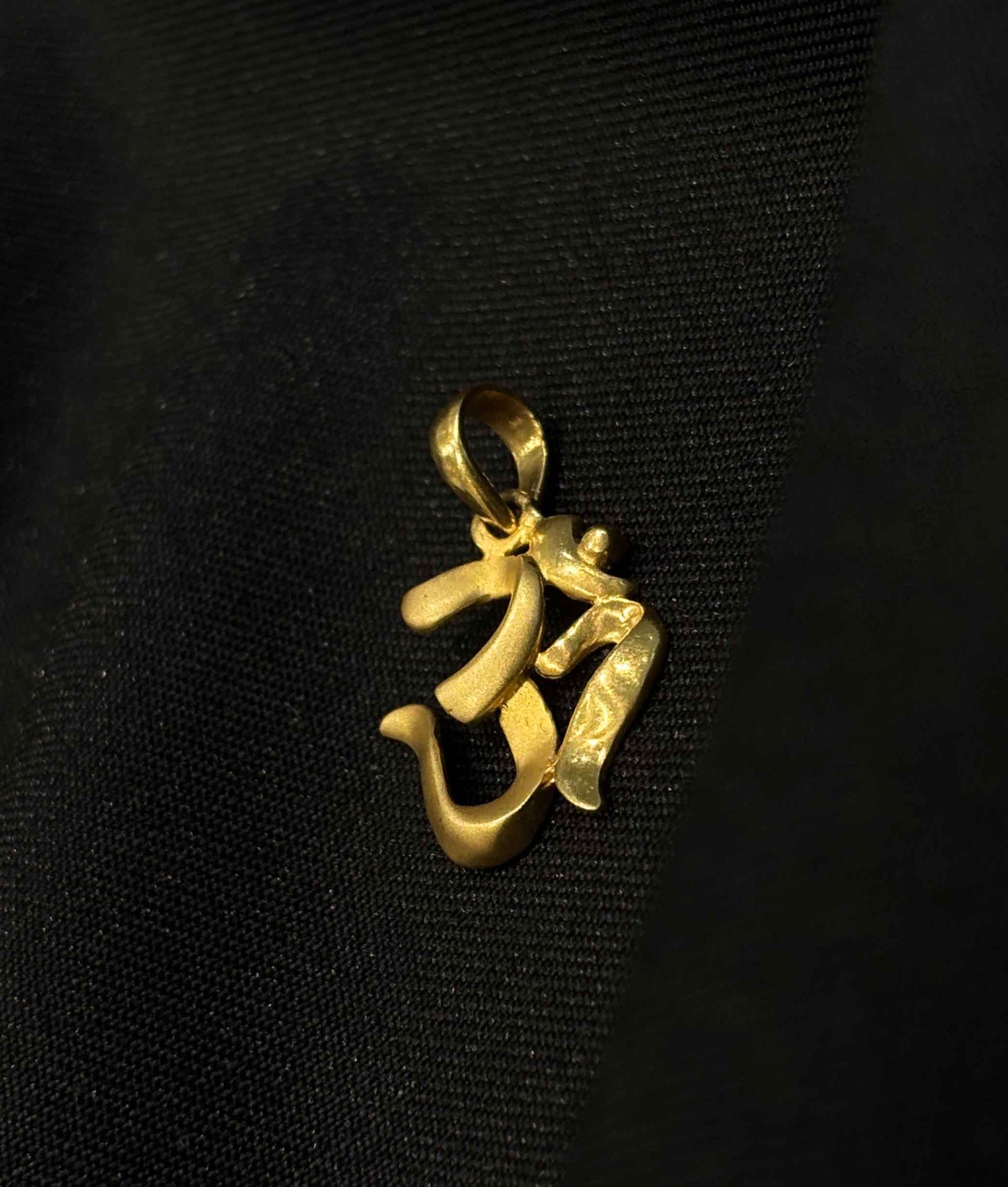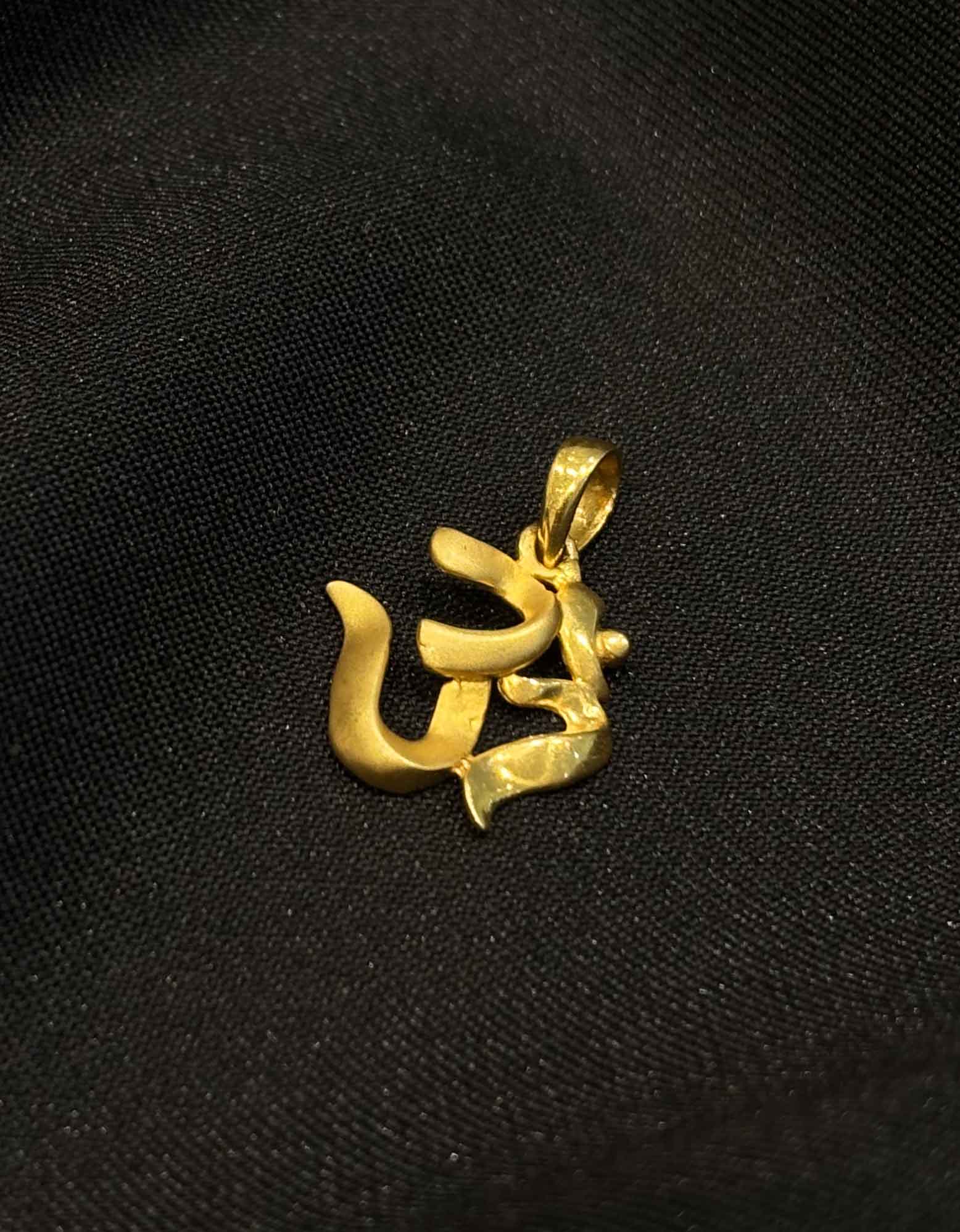 22K gold Om pendant. The sacred Om symbol represents the essence of the universe and is a powerful emblem of peace, harmony, and spiritual connection. This pendant is a meaningful piece for personal reflection or a thoughtful gift.