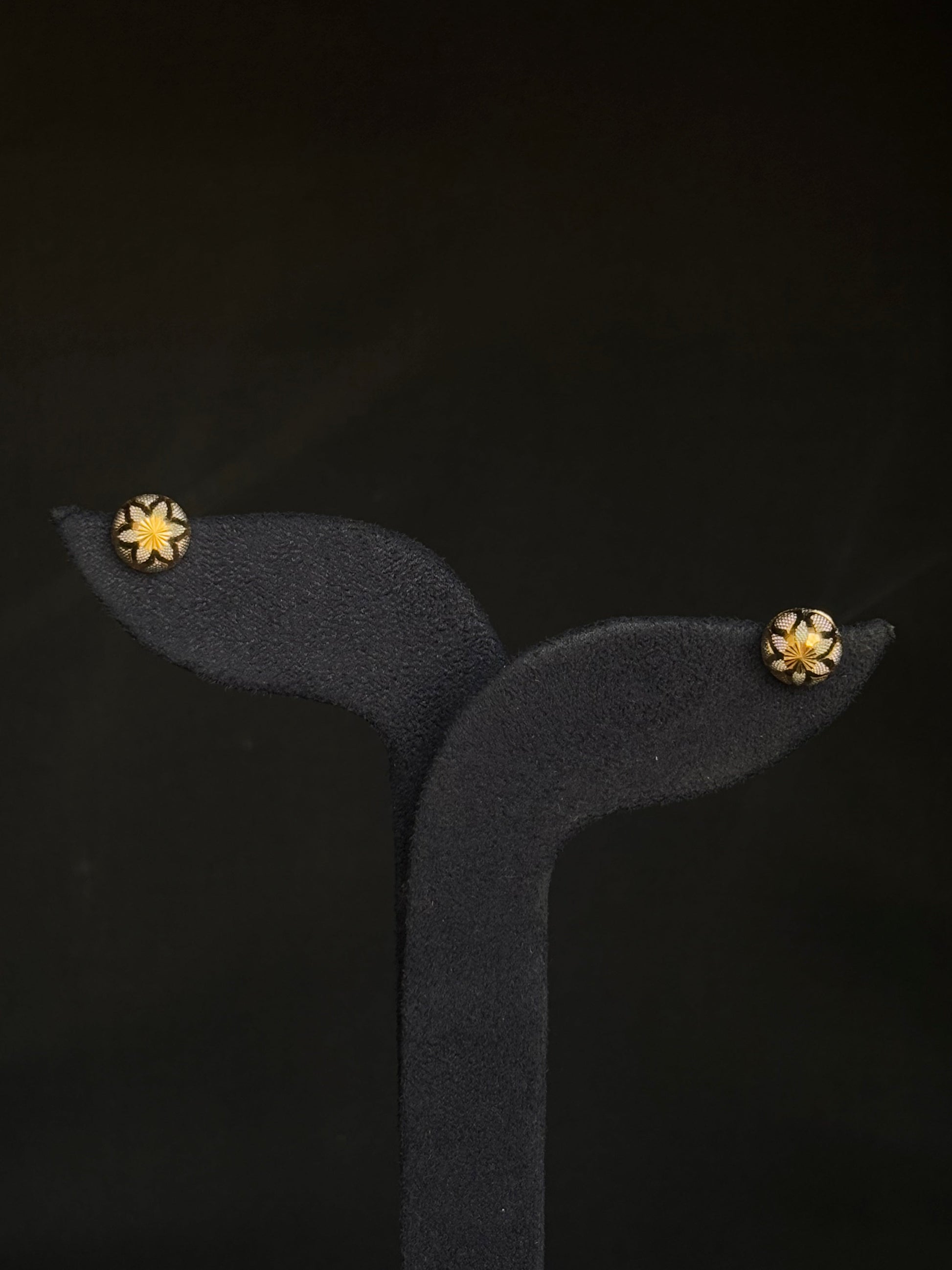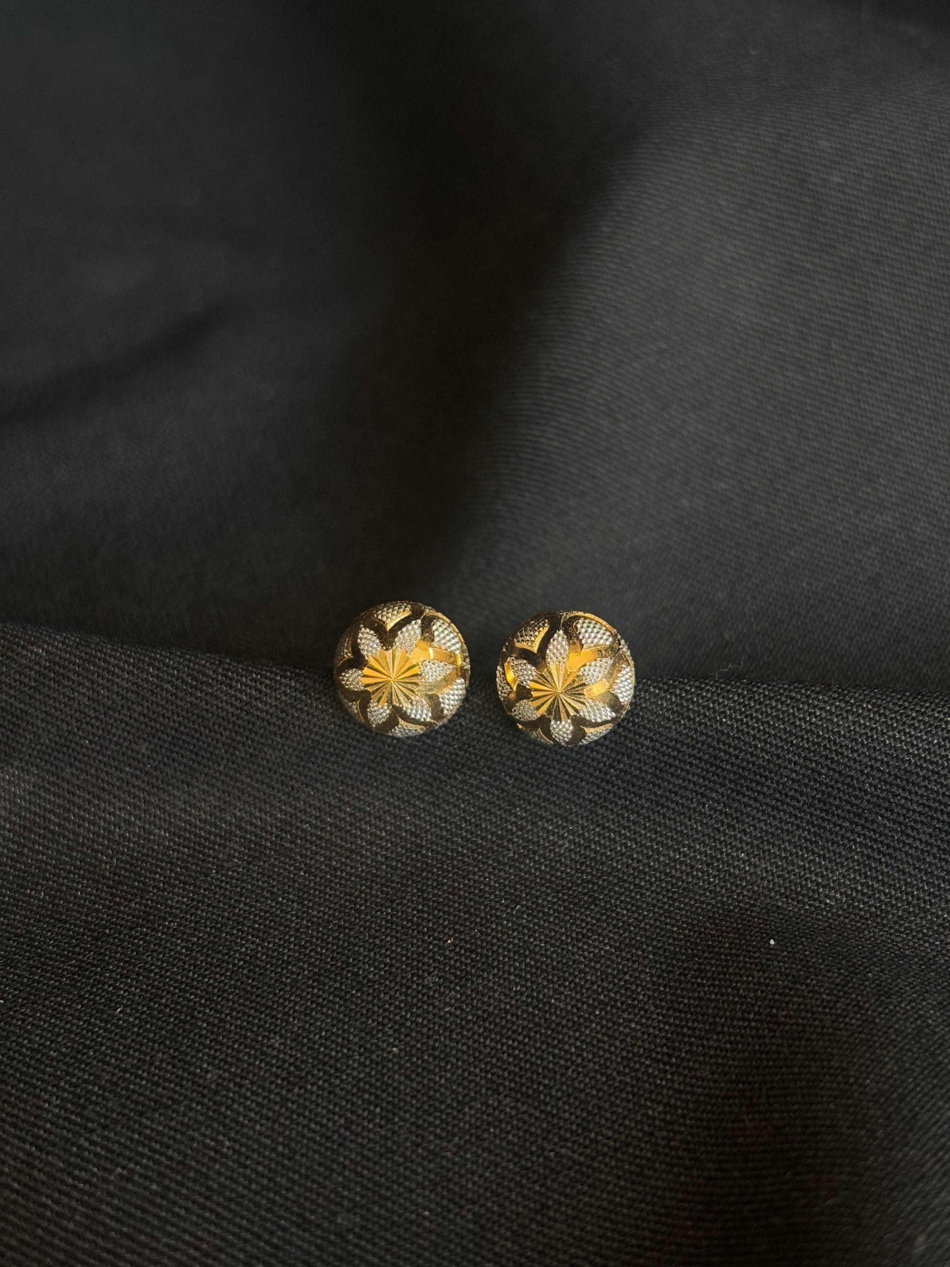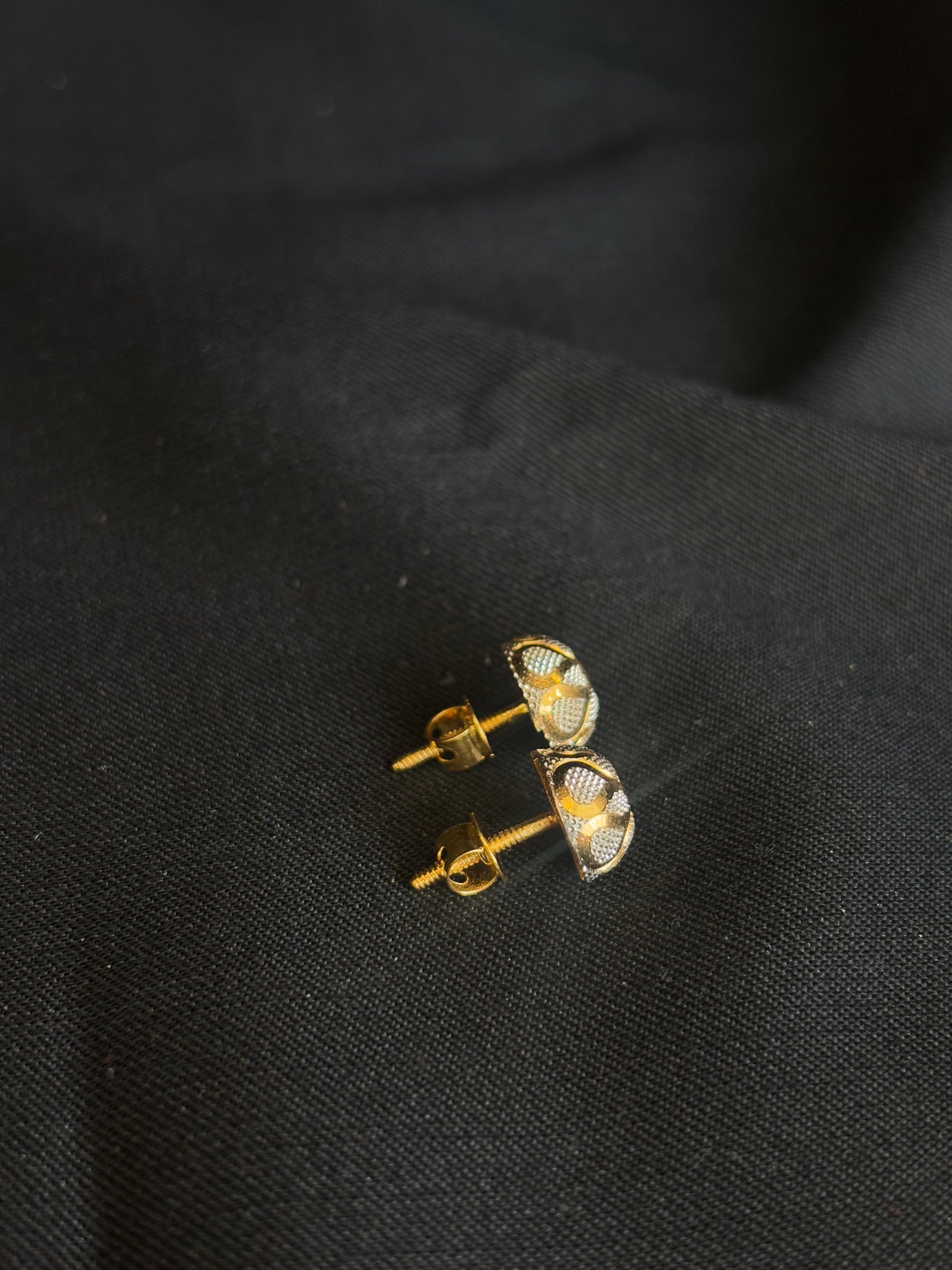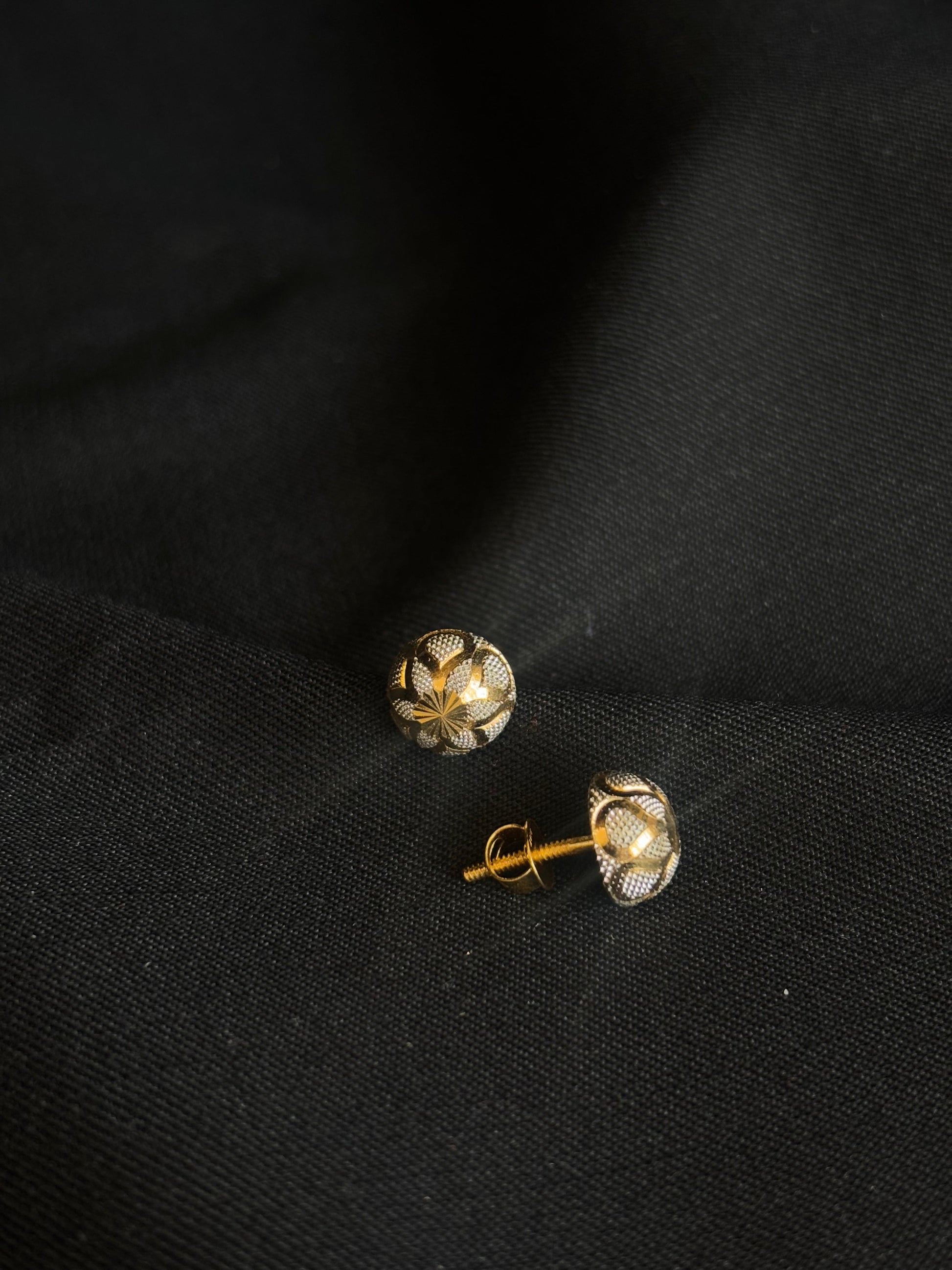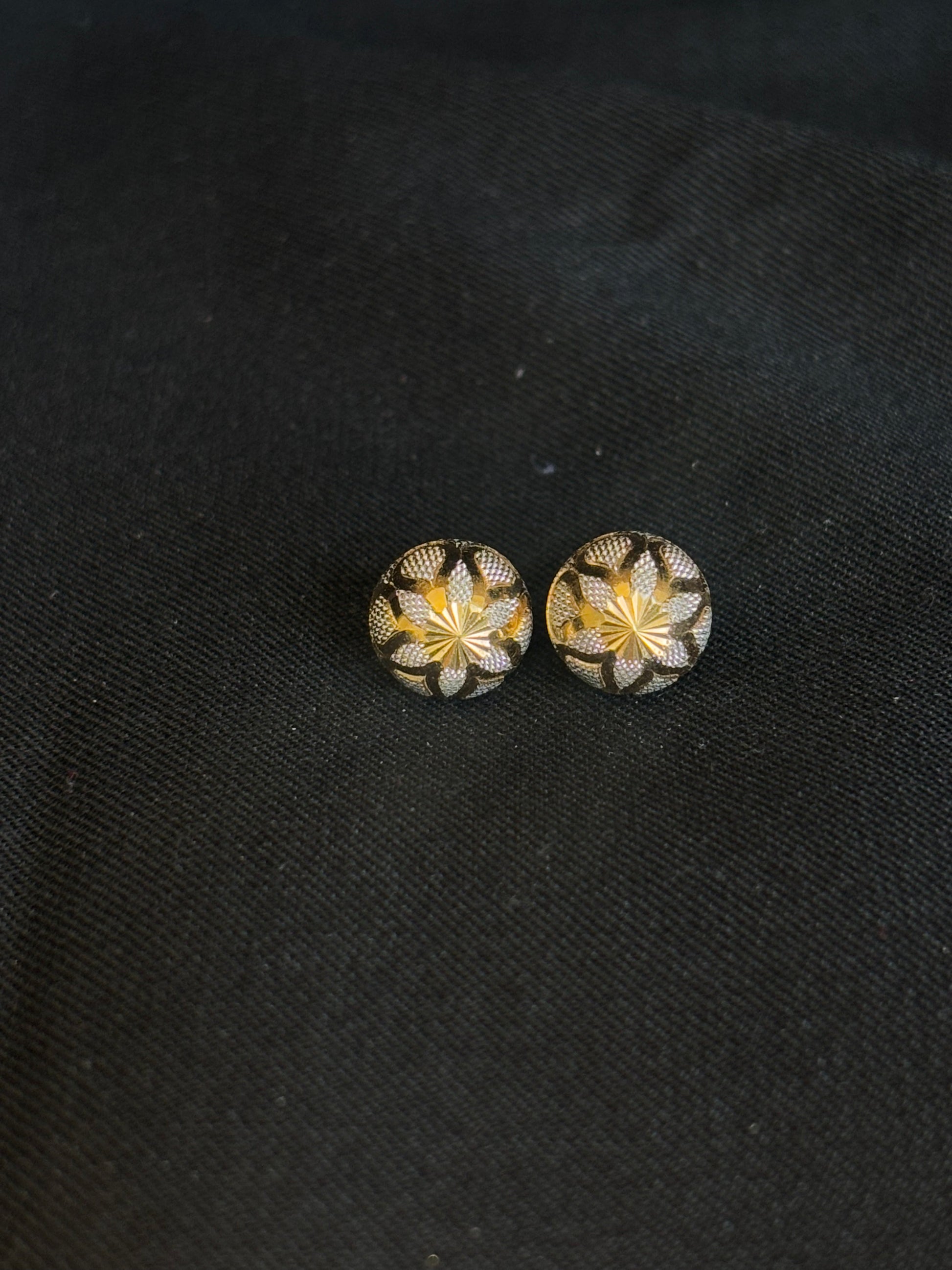 22K Gold Oval Stud Earrings with Floral/Starburst Design.