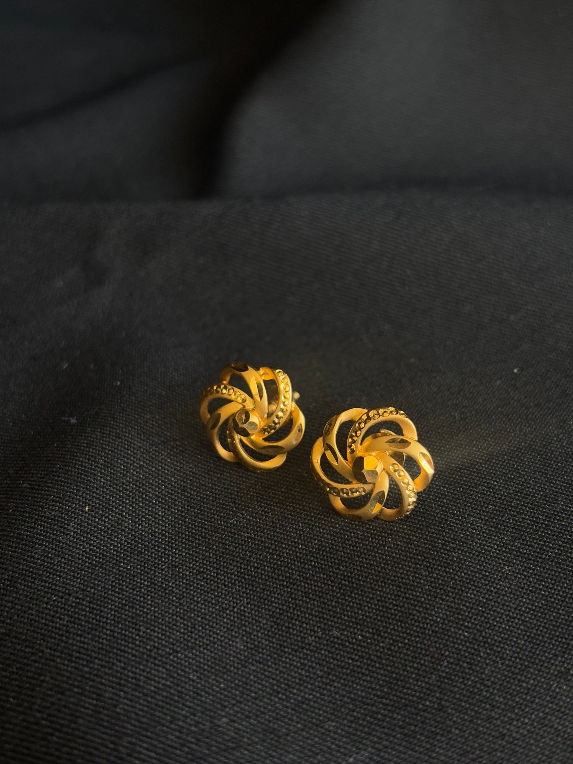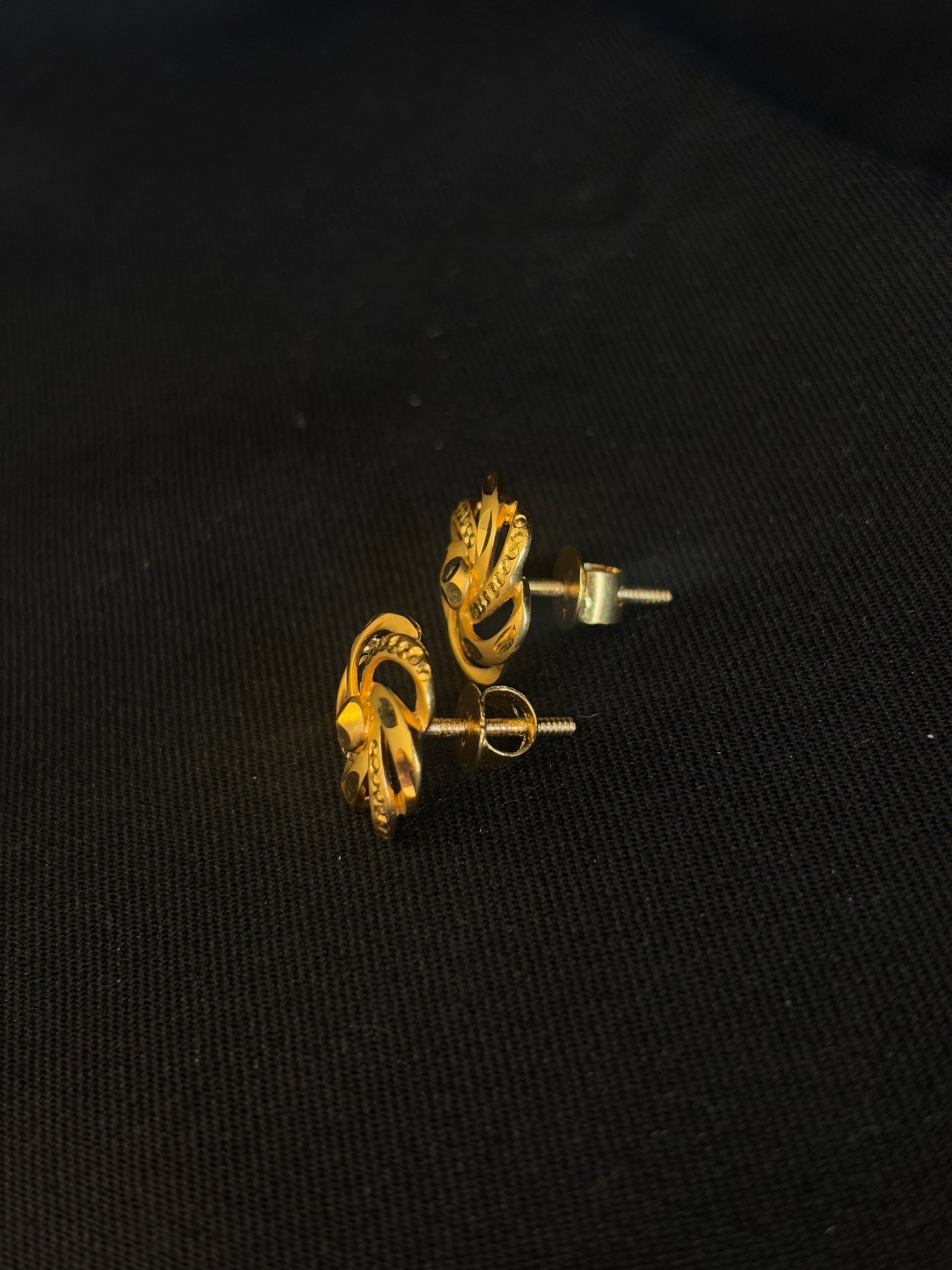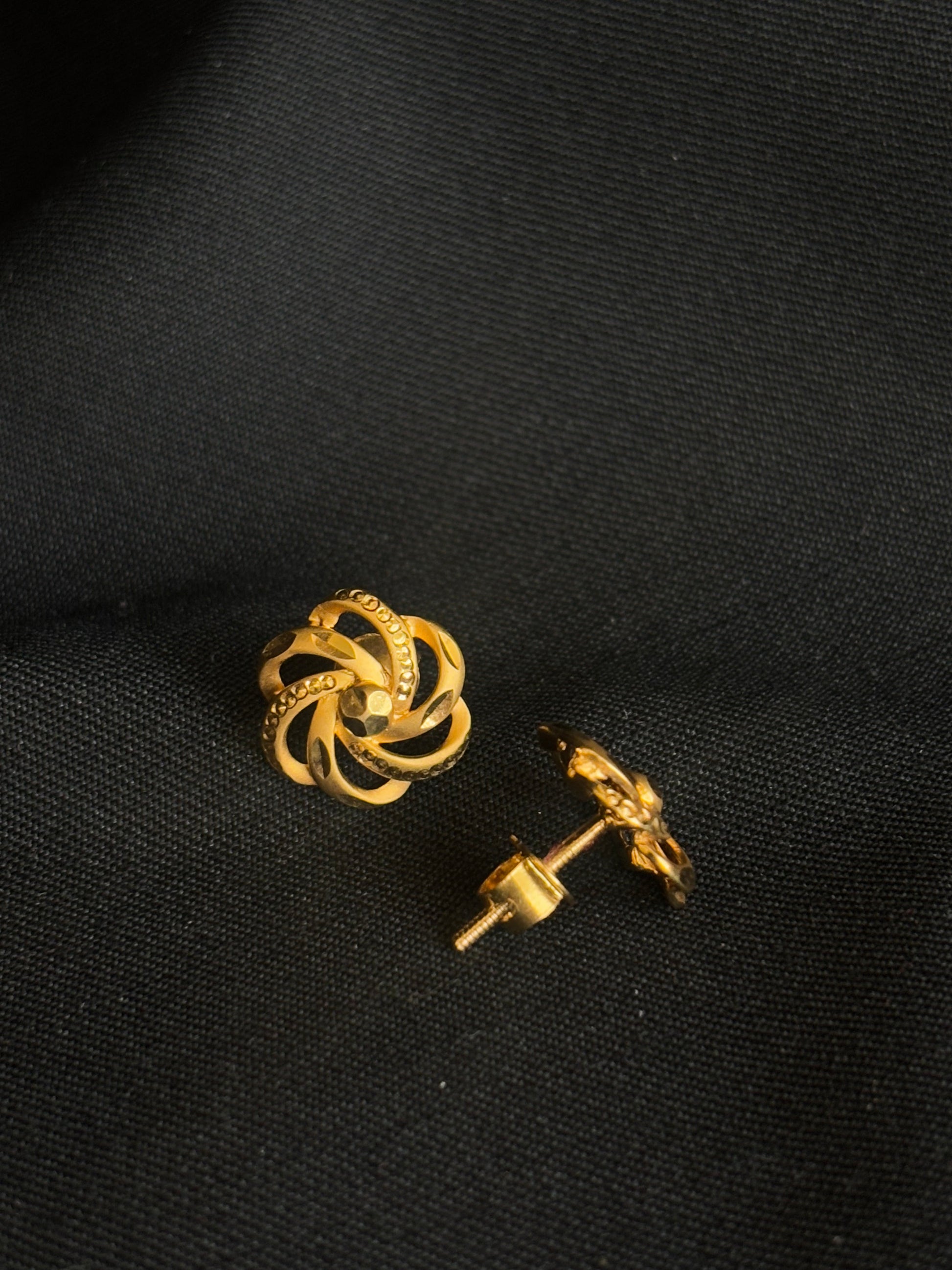 Adorn your ears with these unique 22K gold stud earrings featuring a captivating swirling design. The high purity gold adds a touch of modern elegance to any look.