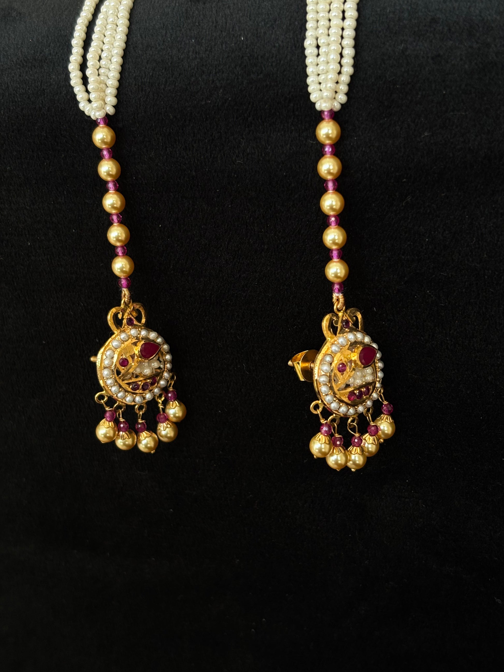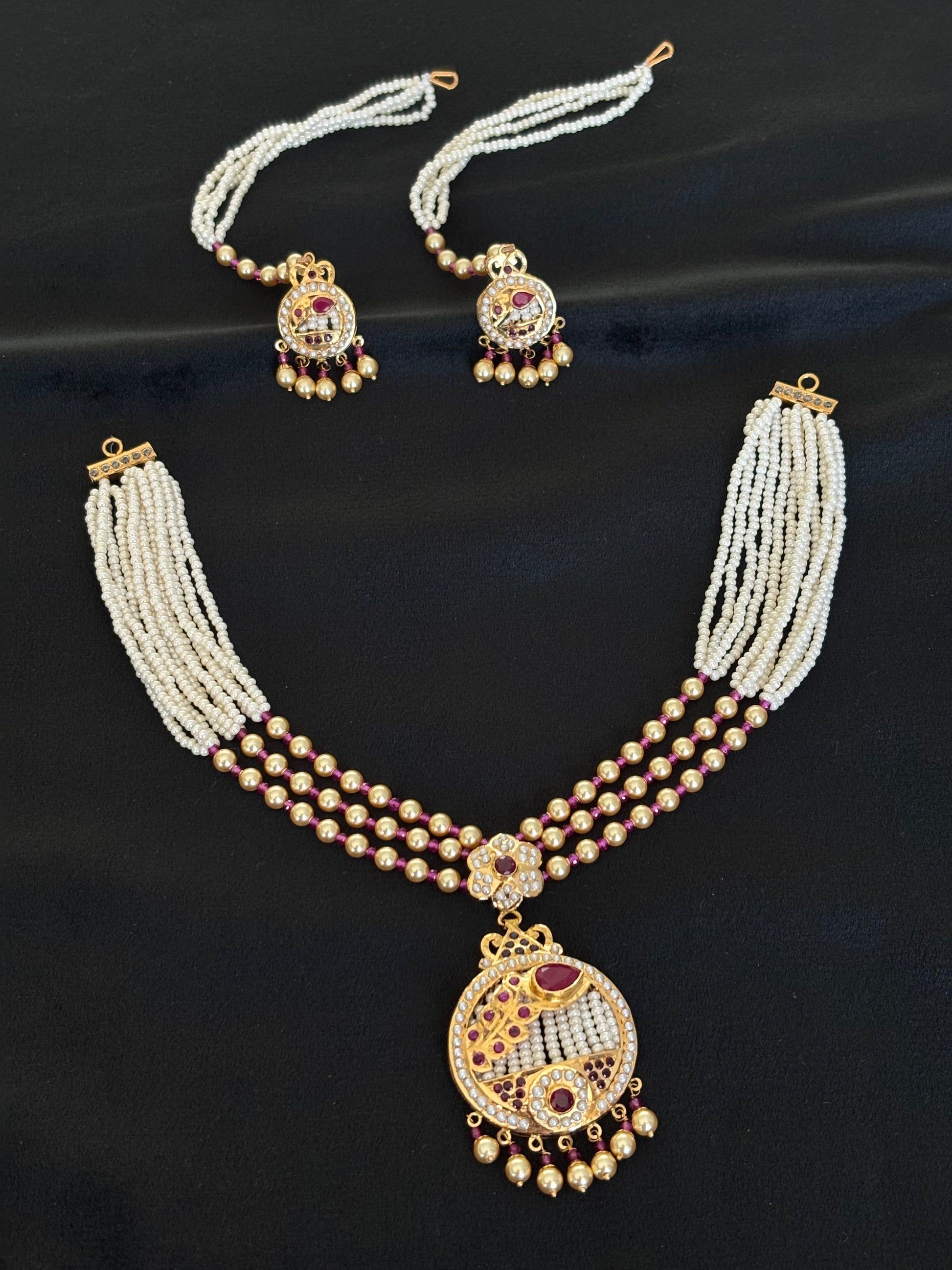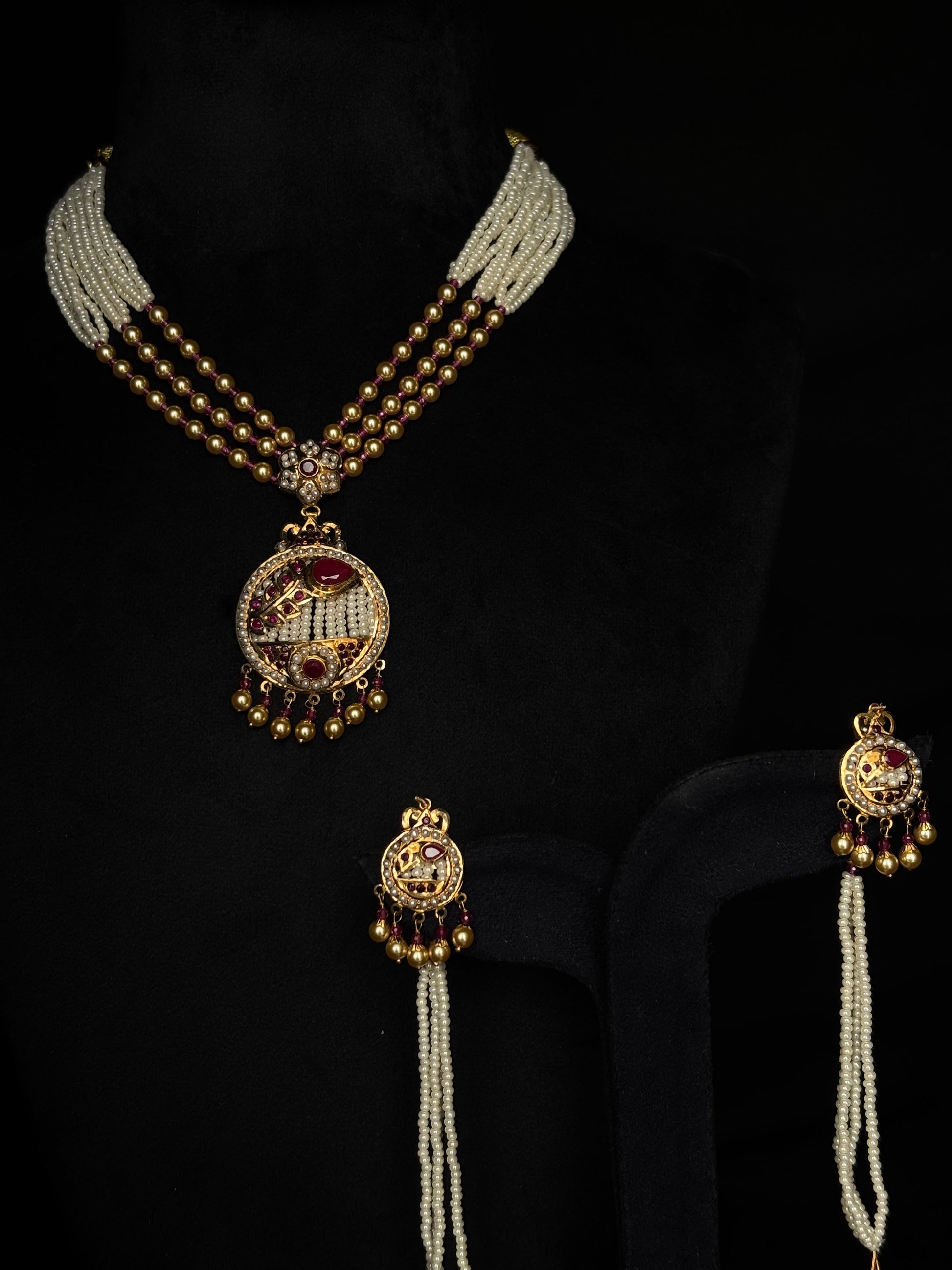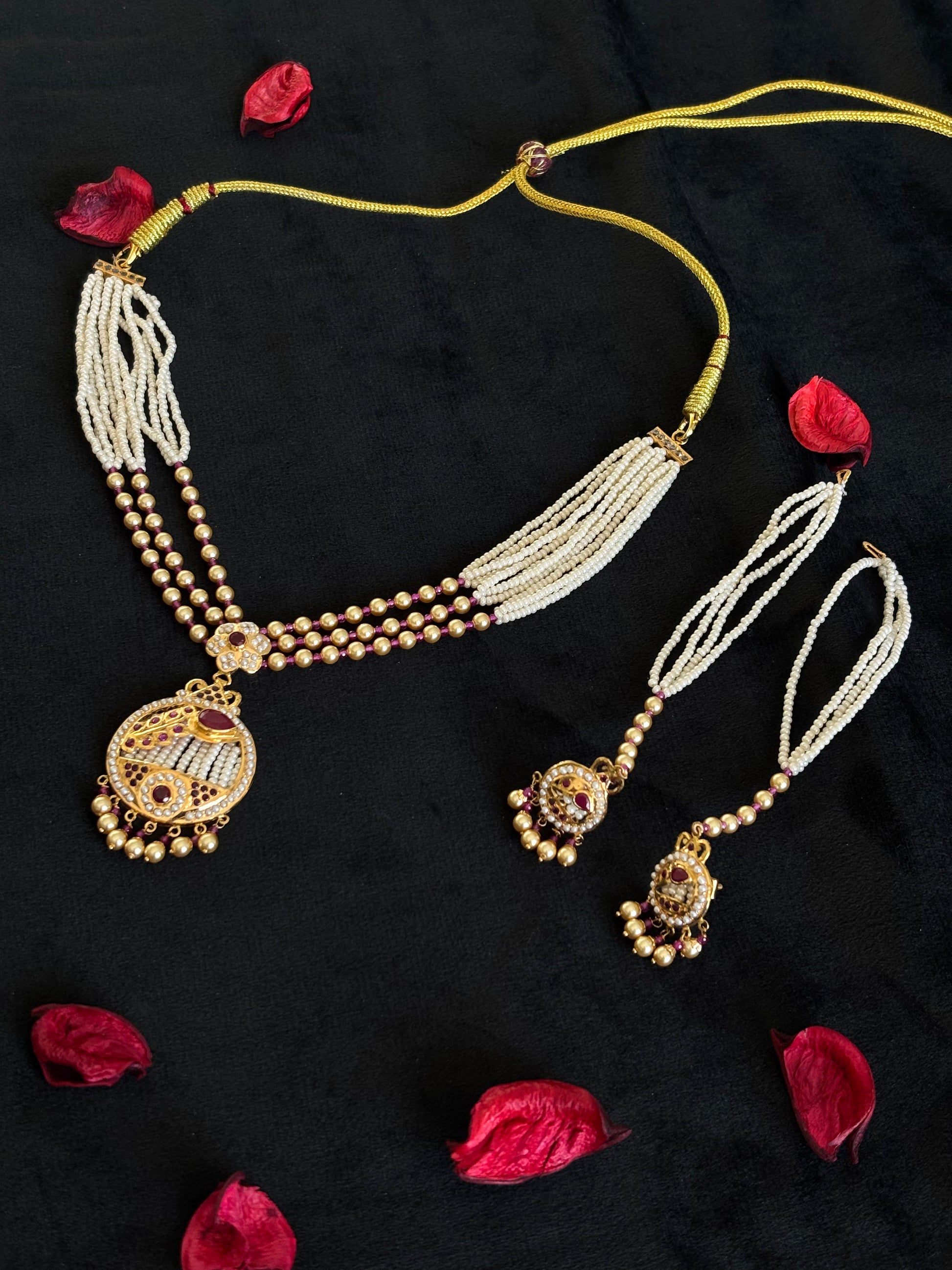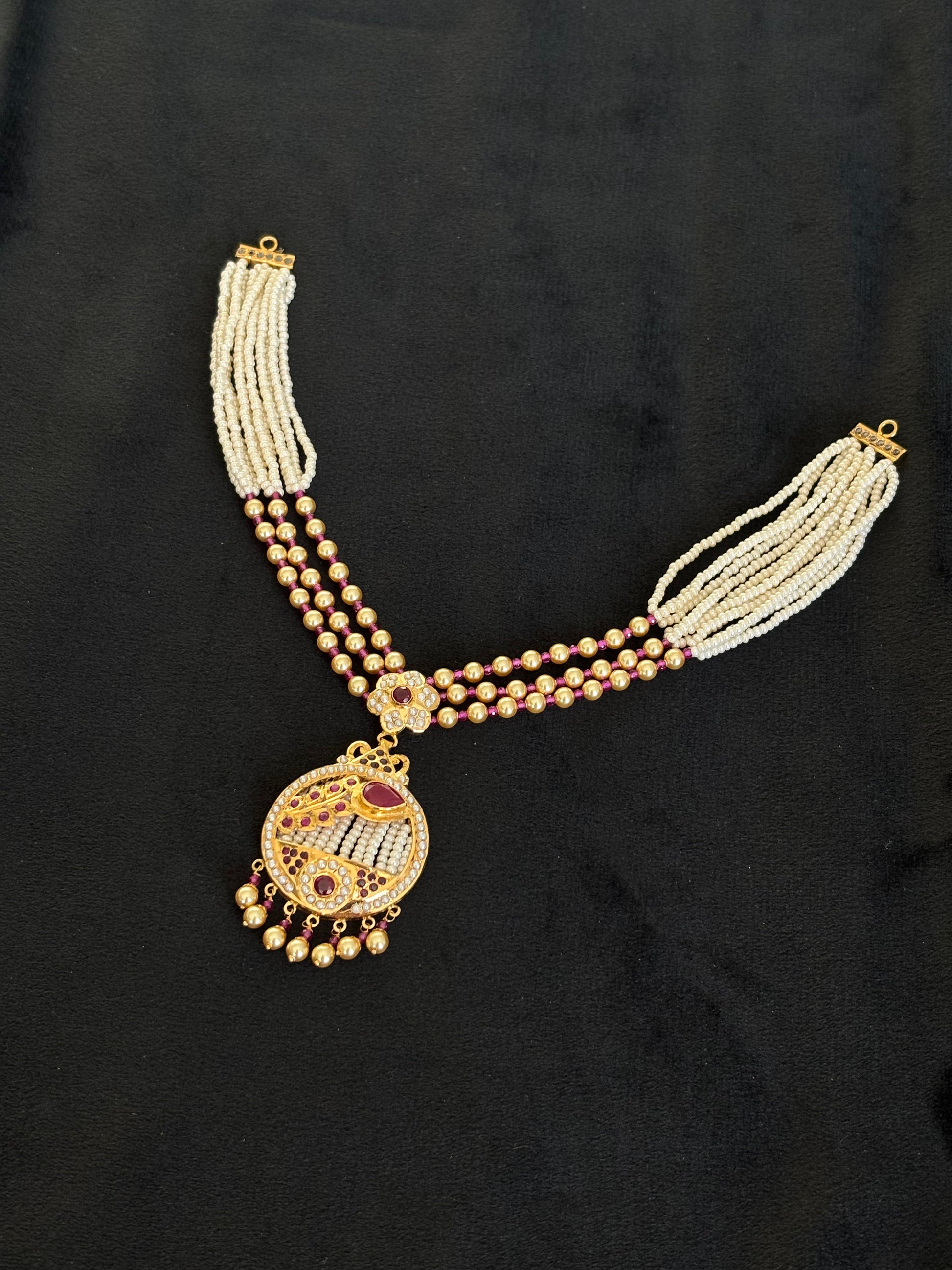22K Gold Traditional Choker Necklace with Pearl and Gemstone Drops
