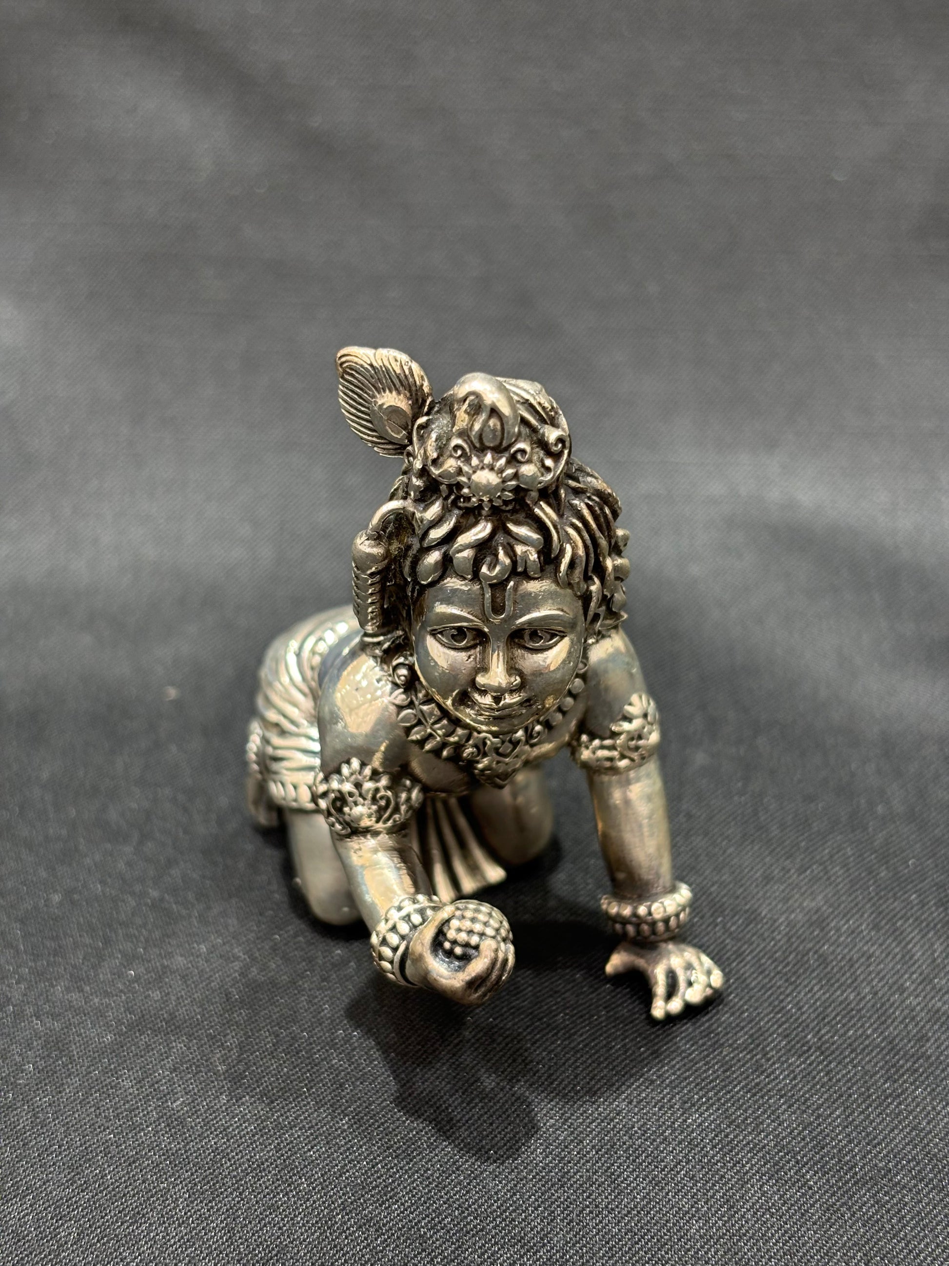 Exquisitely crafted Silver Krishna Laddu Gopal Murti with a high antique finish, perfect for pooja, home decor, and gifting. This divine idol embodies elegance, spirituality, and fine craftsmanship, making it a cherished addition to any sacred space.