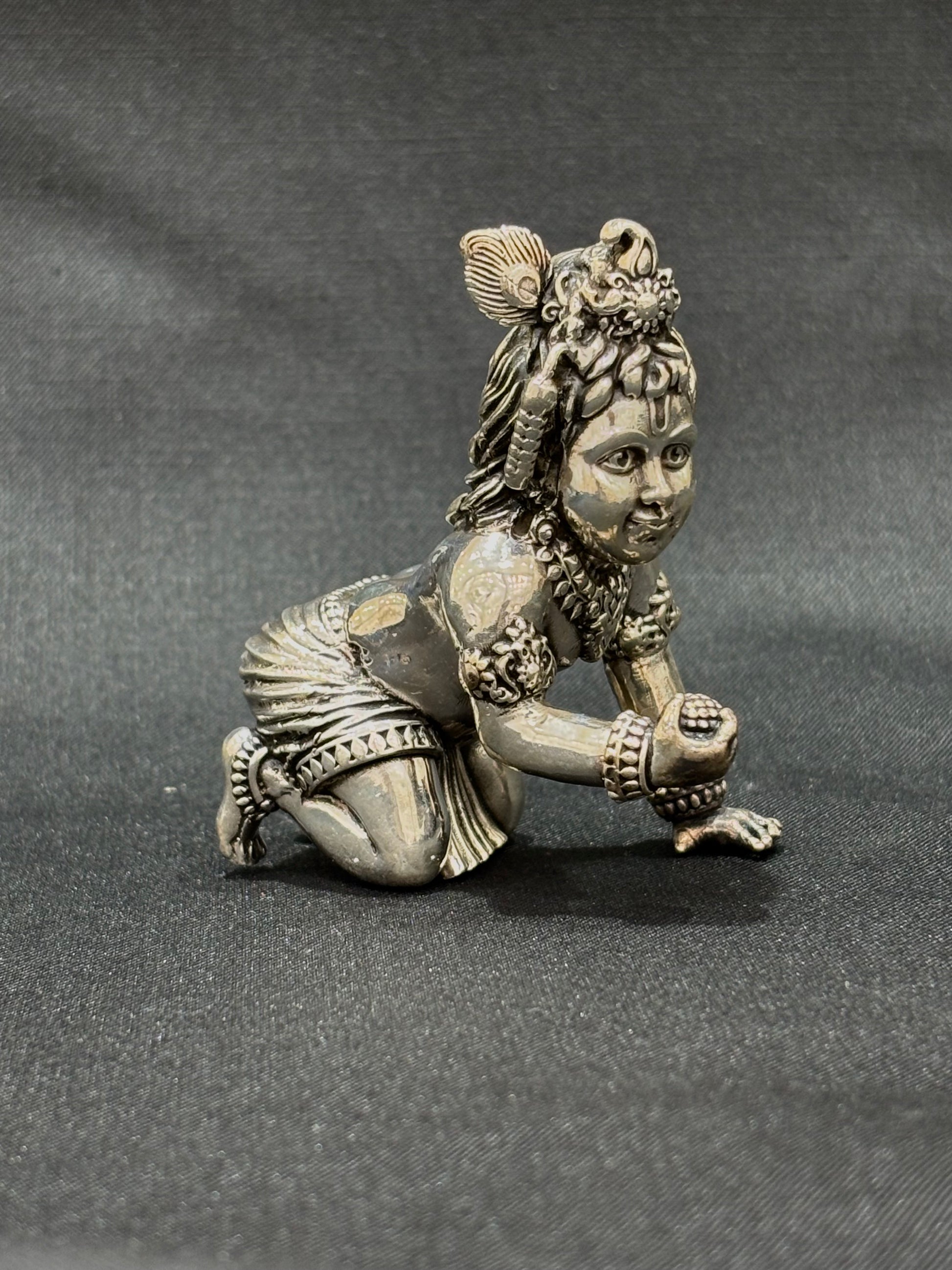 Silver Krishna Laddu Gopal Murti with High Antique Finish Divine Idol